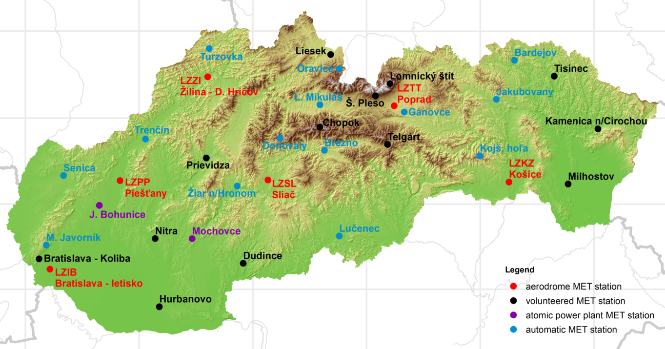 MET Offices at Bratislava, Košice and Poprad-Tatry airports are responsible to provide the meteorological information in the FIR. MET Offices provide the meteorological information for: