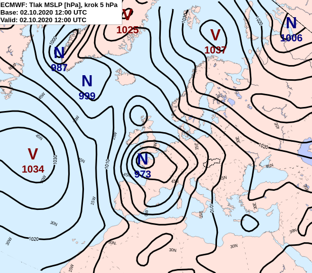 Od 1.10. do 5.10. prevládalo nad našou oblasťou juhozápadné až južné prúdenie. Riadiacim tlakovým útvarom bola tlaková níž so stredom nad Francúzskom a Britskými ostrovmi.