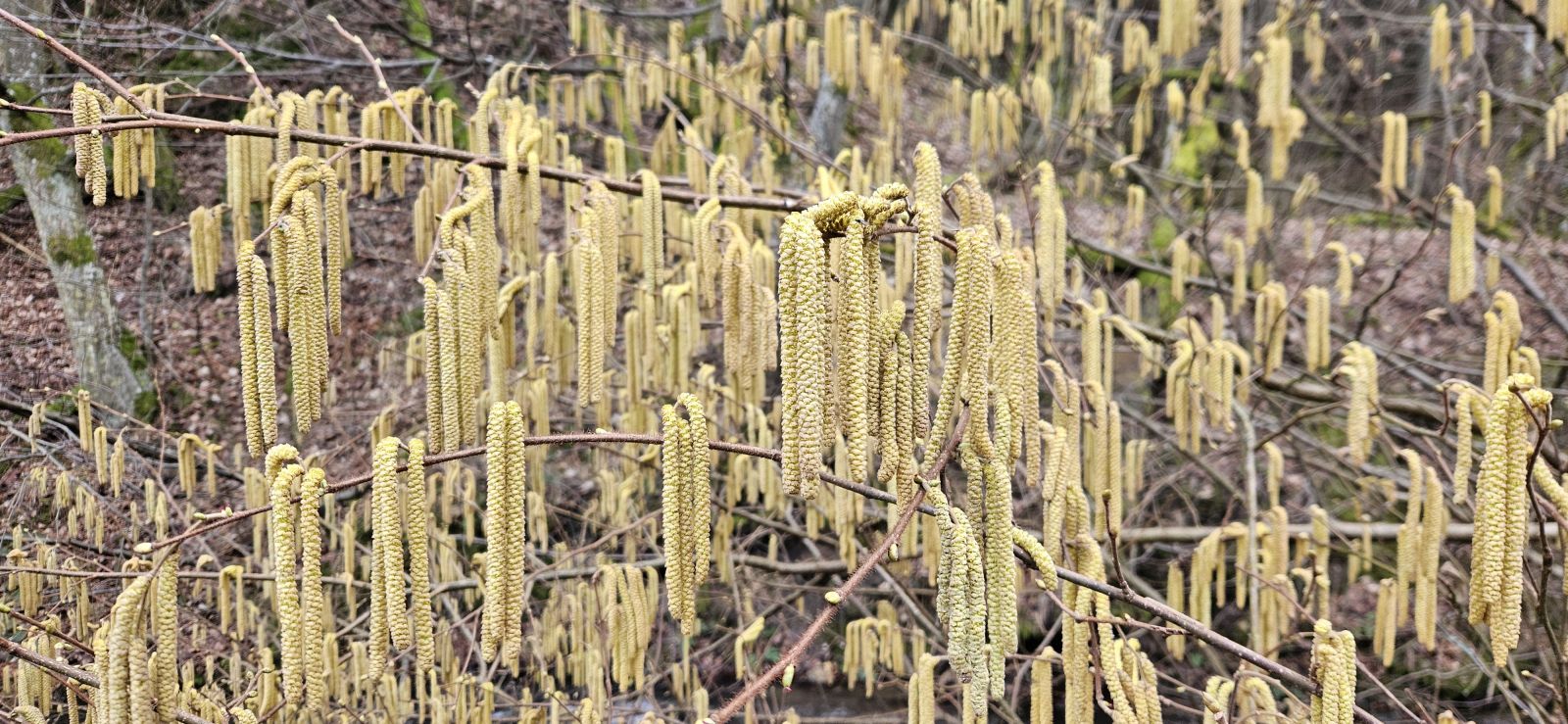 Obr. 2. Plné kvitnutie liesky obyčajnej zo dňa 14.2. 2026 v oblasti Považského Inovca (Foto: J. Rozkošný)