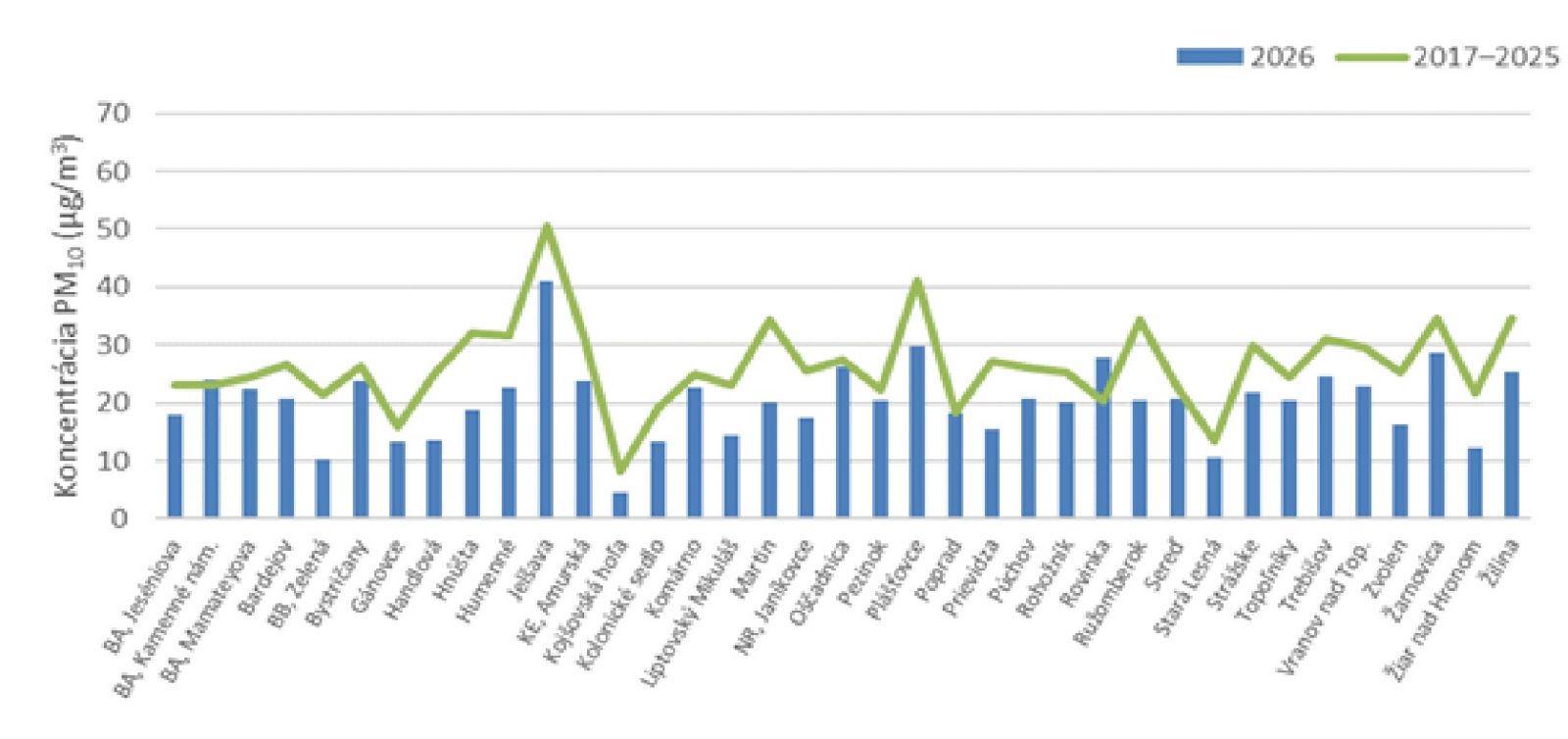 Z hľadiska denného limitu pre PM10 (50 µg/m³) došlo k prekročeniam na približne polovici staníc, a to najmä na začiatku a konci mesiaca. Najvyšší počet dní s prekročením tohto limitu bol zaznamenaný vo Veľkej Ide (4 dni), v Jelšave (3 dni) a v Bratislave na Trnavskom mýte (3 dni). Celkovo však bolo týchto prekročení výrazne menej ako v predchádzajúcom mesiaci.