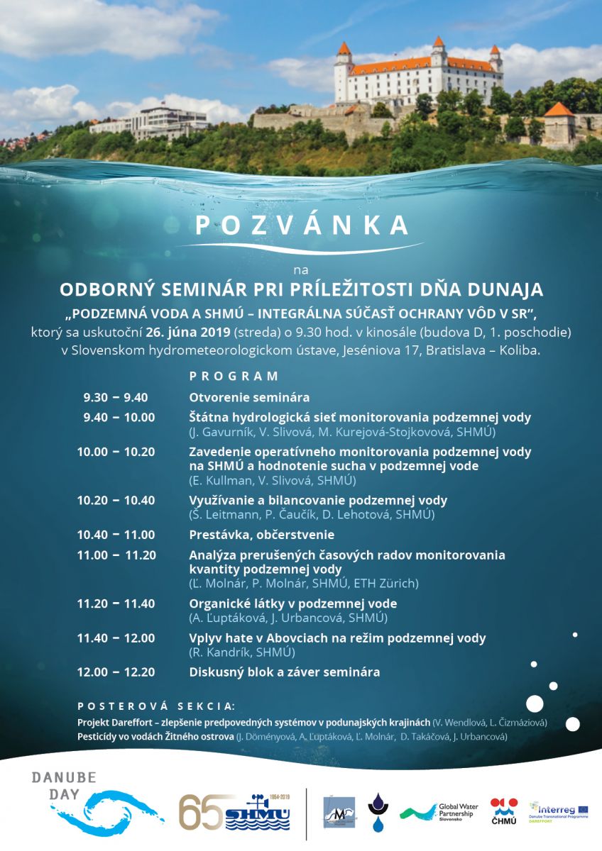 Súčasťou osláv Dňa Dunja bude aj odborný seminár “PODZEMNÁ VODA a SHMÚ - INTEGRÁLNA SÚČASŤ OCHRANY VÔD V SR”, ktorý sa uskutoční 26. júna 2019 (streda) o 9.30 hod. v kinosále (budova D, 1. poschodie) na Slovenskom hydrometeorologickom ústave, Jeséniova 17, Bratislava - Koliba.