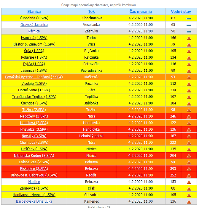 Na vzniknutú situáciu boli vydané hydrologické výstrahy SHMÚ a upozornené orgány protipovodňovej ochrany SR.