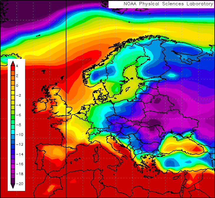 V ďalšom vývoji došlo k zmohutneniu tlakovej výše nad západnou Európou na hodnoty cez 1040 hPa, pretože tu zmohutnel výškový hrebeň. Ten zmohutnel kvôli zosilnenej teplej advekcii na prednej strane hlbokej tlakovej níže v blízkosti južného Grónska. To súčasne spôsobilo, že sa výškový hrebeň 18. januára "natiahol" až po Špicbergy a súčasne sa v západnej časti výše nad Sibírou sformovalo nevýrazné výškové anticyklonálne jadro (obr. 4). V tomto čase sa v závetrí Skalistých hôr v USA začala formovať mladá tlaková níž, ktorá do vývoja synoptickej situácie v Európe zasiahla neskôr.