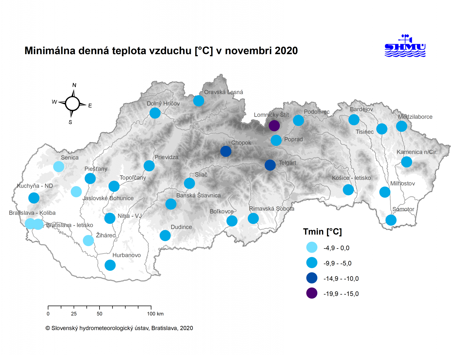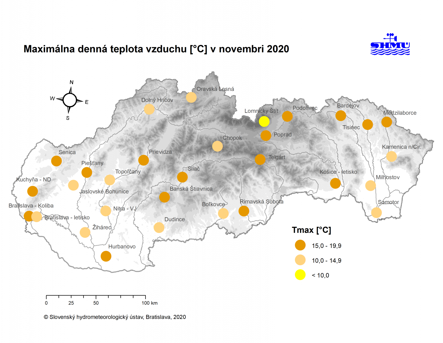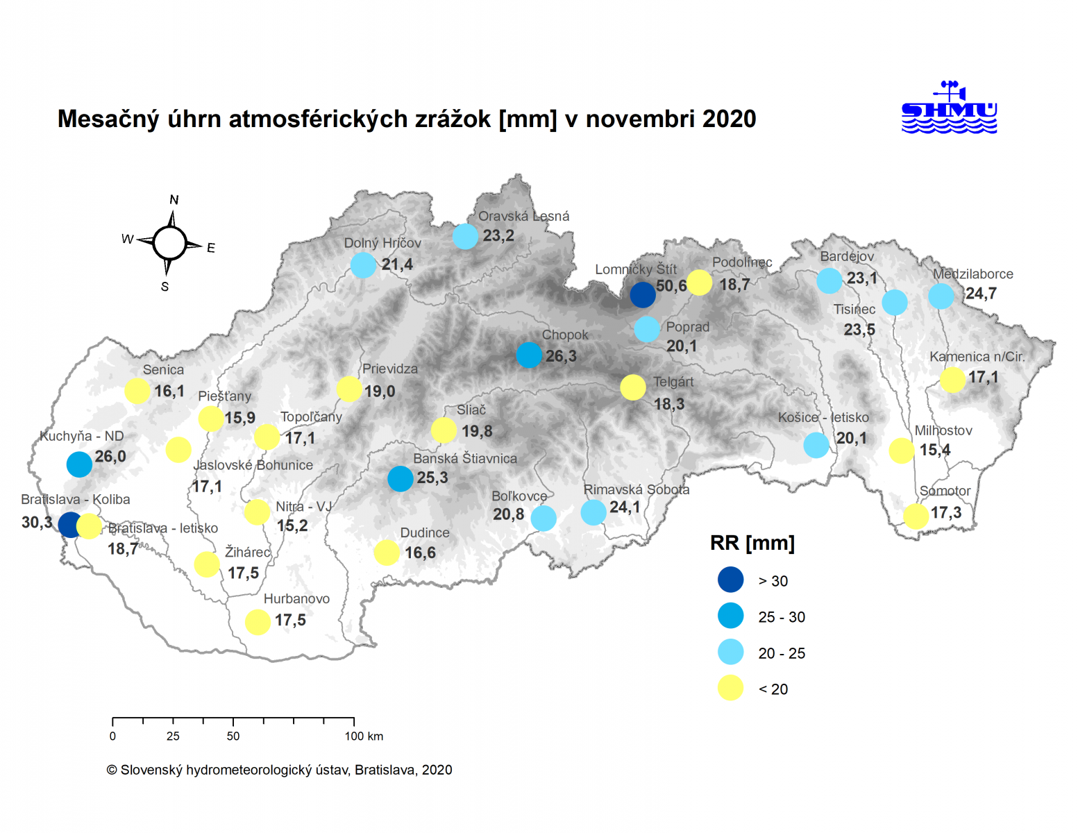 November 2020 – Na väčšine územia teplotne normálny, vo vysokých polohách mimoriadne nadnormálny a zrážkovo podnormálny.
