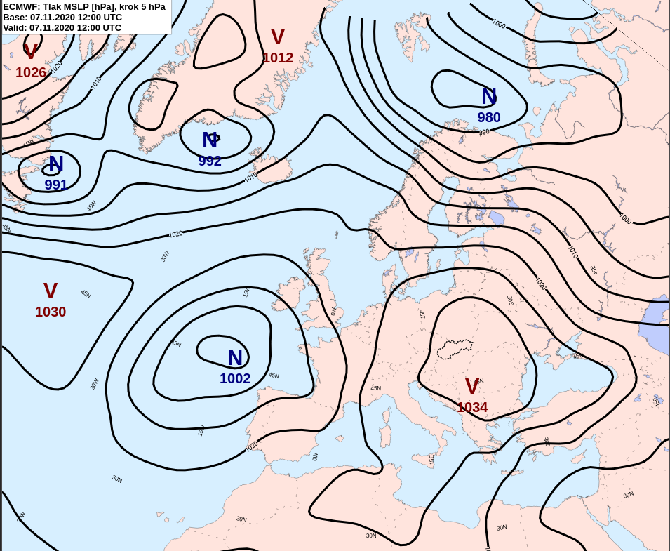 Za takýchto synoptických podmienok prúdil najmä vo vyšších hladinách ovzdušia od západu aj do našej oblasti počas veľa dní teplý vzduch a pri zemi sa v inverznej vrstve nachádzal často relatívne chladný a vlhký vzduch. Preto bolo počas viacerých dní novembra v nižších polohách chladnejšie ako vo vyšších. Poveternostných frontov sme počas mesiaca veľa nepozorovali.