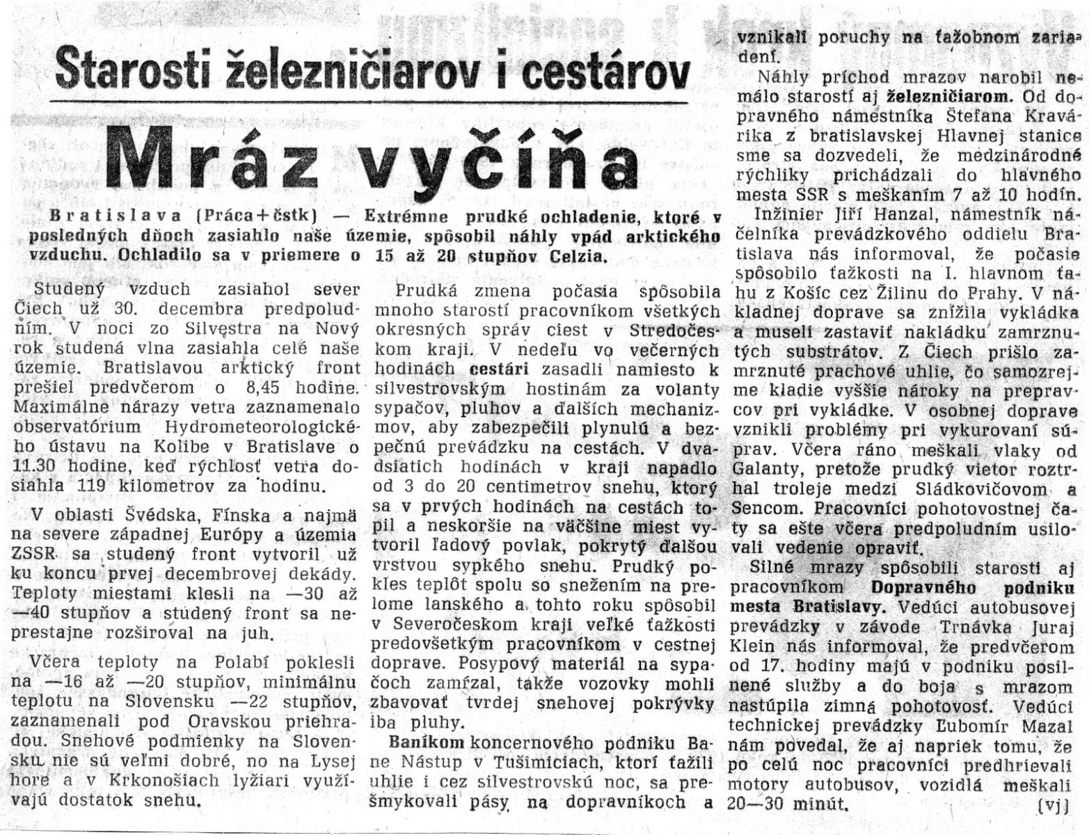 ▲ Obr. 4: Článok v denníku Práca zo dňa 3. januára 1979.