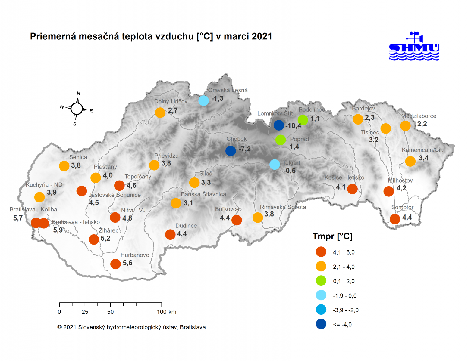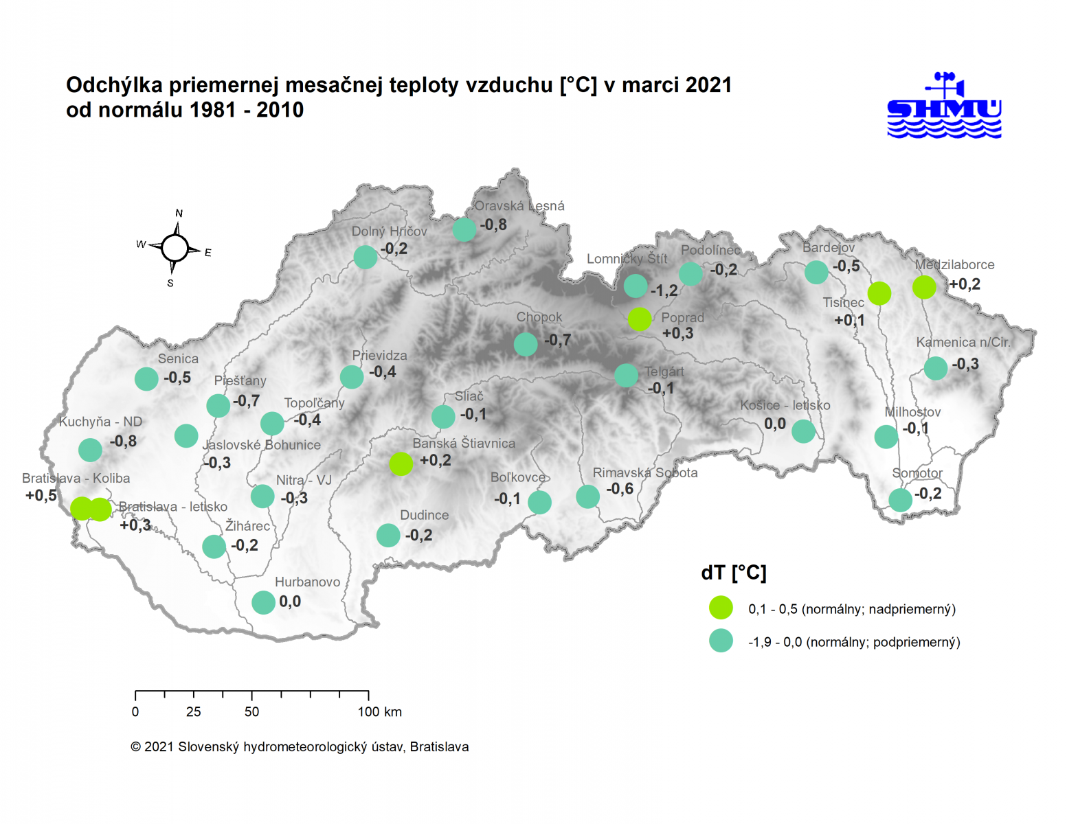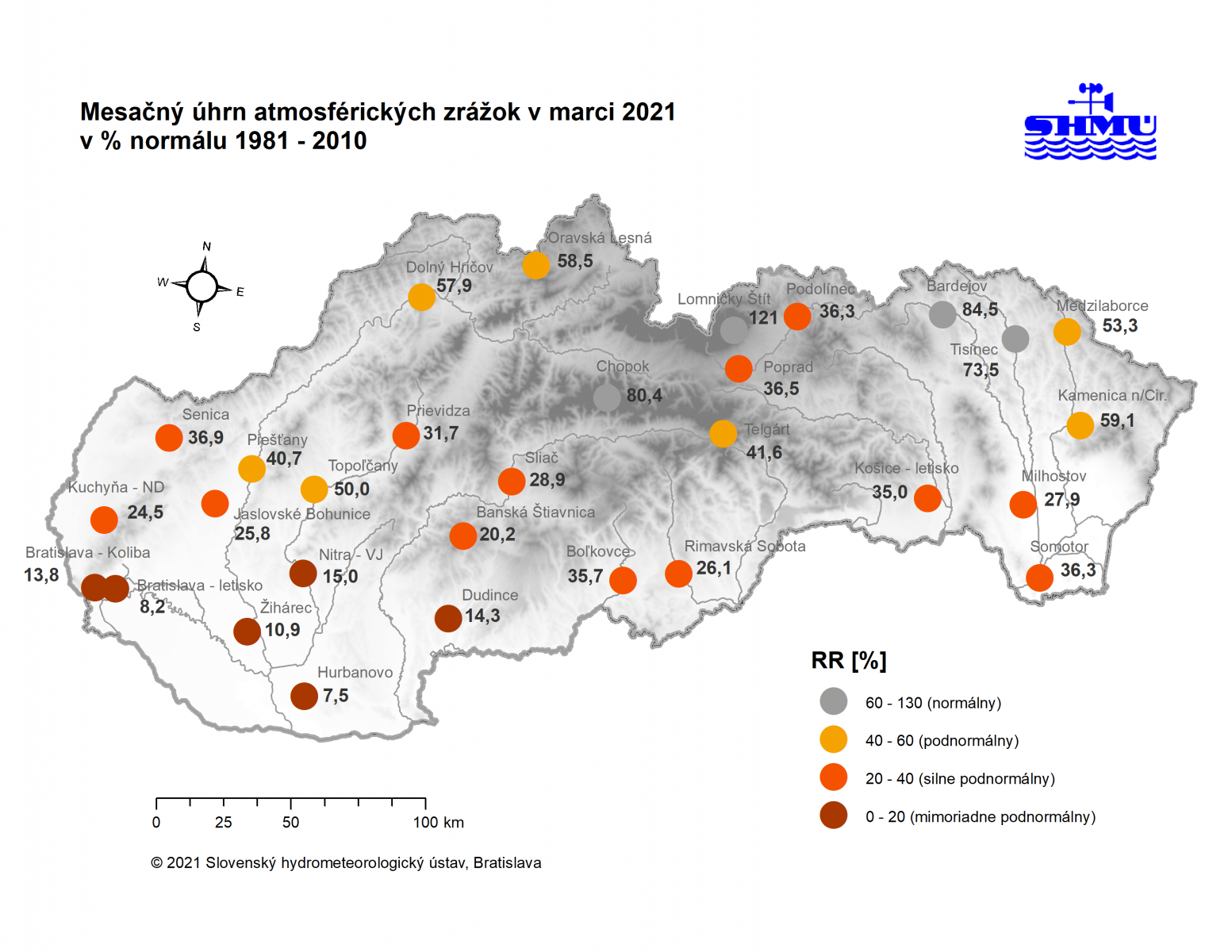 Marec 2021 – bol na väčšine územia Slovenska teplotne podpriemerný (avšak v rámci normálu 1981 - 2010) a zrážkovo silne až mimoriadne podnormálny (veľmi až mimoriadne suchý).