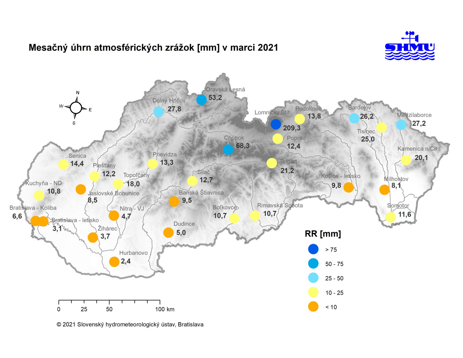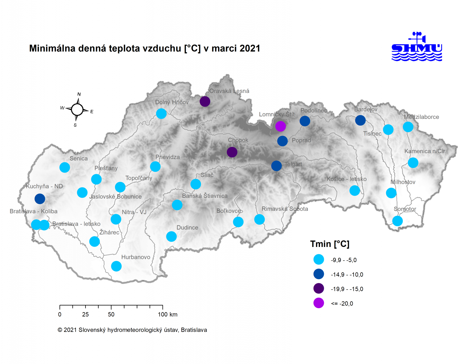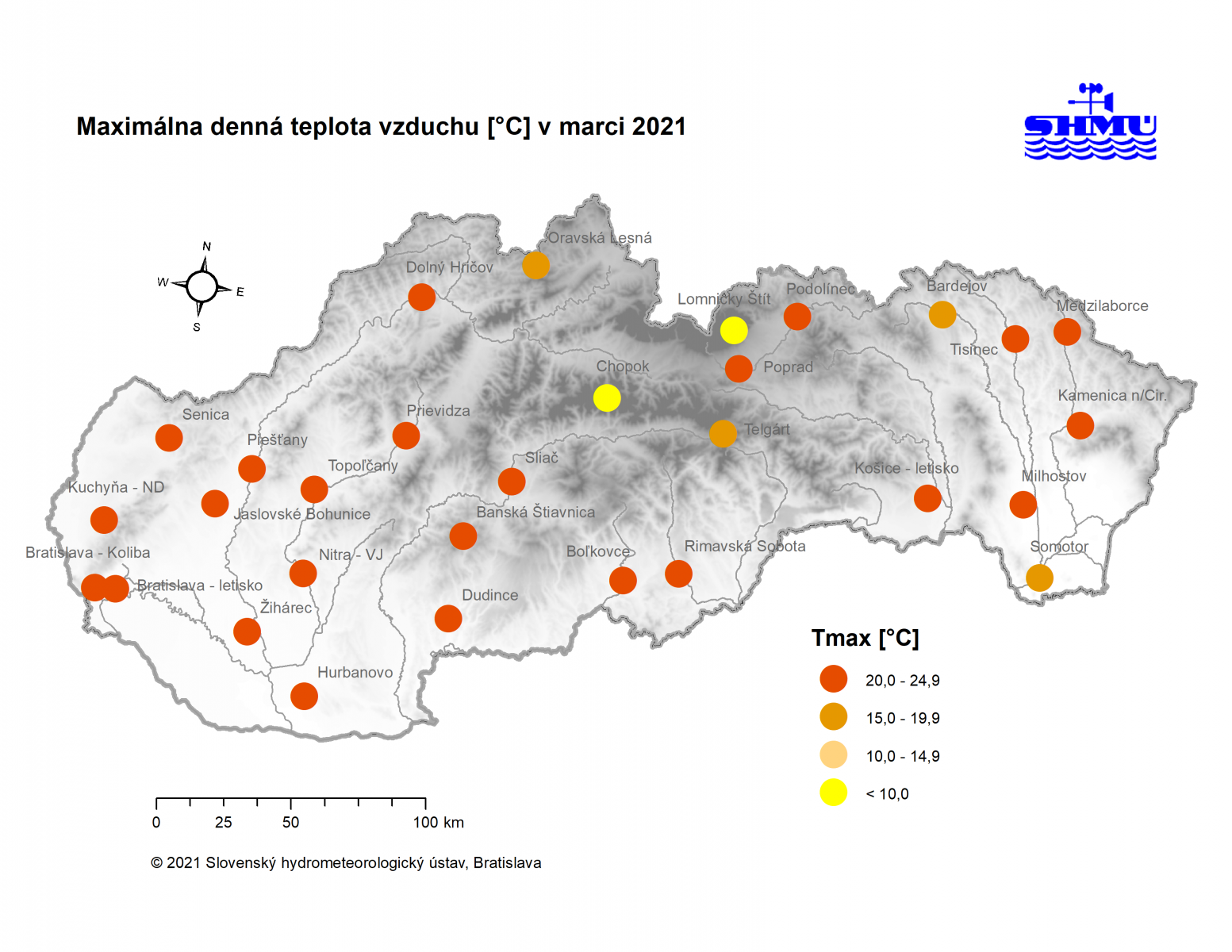 Marec 2021 – bol na väčšine územia Slovenska teplotne podpriemerný (avšak v rámci normálu 1981 - 2010) a zrážkovo silne až mimoriadne podnormálny (veľmi až mimoriadne suchý).