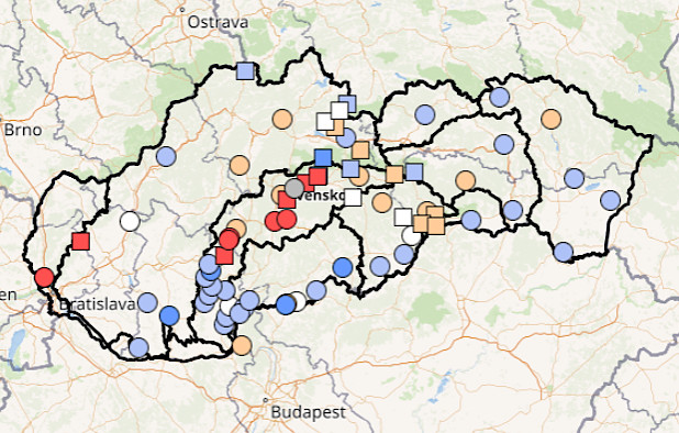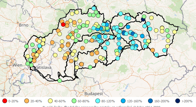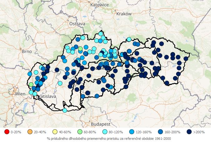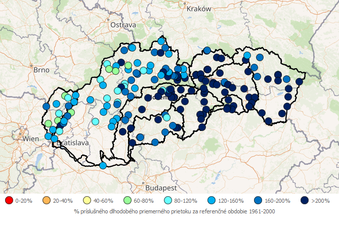 Hodnotenie aktuálneho hydrologického stavu sa vykonáva na základe operatívnych prietokových údajov z vybraných vodomerných staníc. Finálne spracované prietokové údaje sa od operatívnych môžu líšiť.