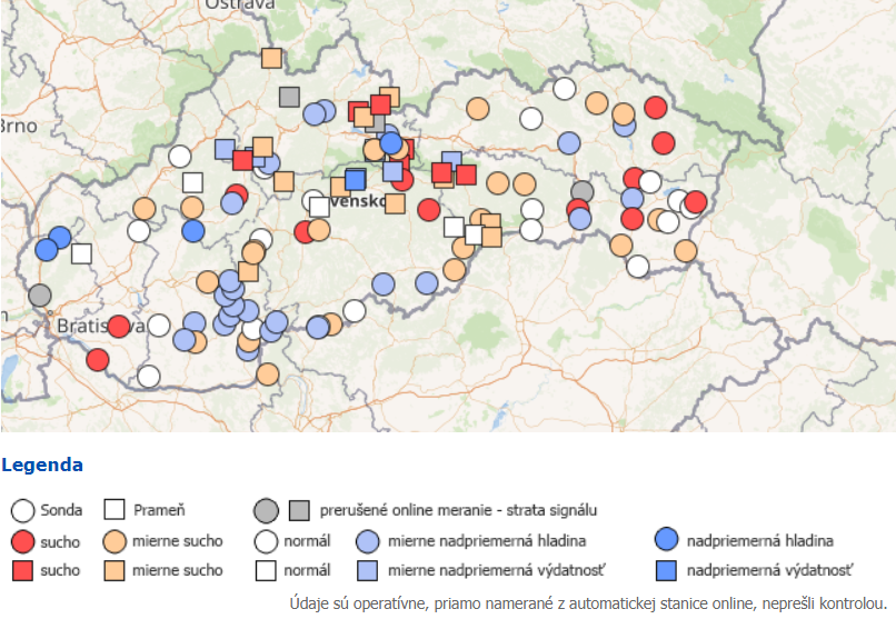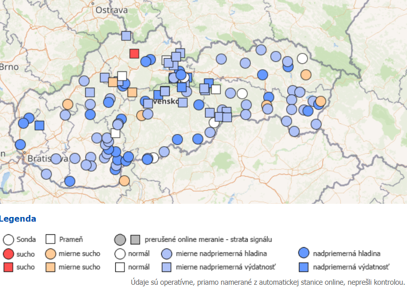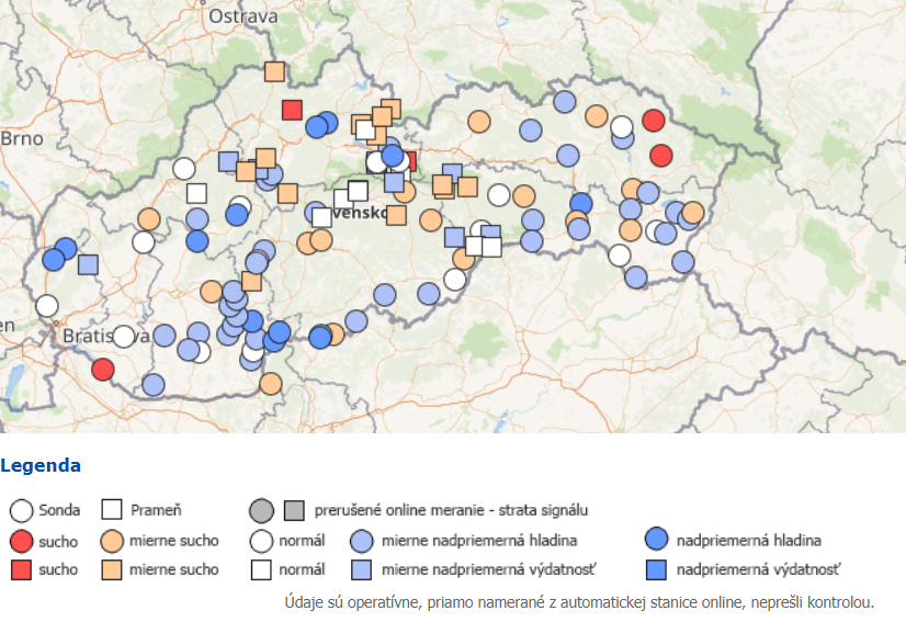 Hodnotenie aktuálneho hydrologického stavu sa vykonáva na základe operatívnych prietokových údajov z vybraných vodomerných staníc (VS) povrchových vôd, na základe operatívnych hodnôt hladiny podzemnej vody a výdatnosti prameňov vybraných monitorovacích objektov. Finálne spracované údaje v oboch hodnoteniach sa od operatívnych môžu líšiť.