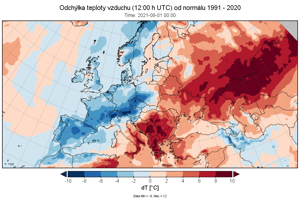 Počas ďalšieho dňa nás ovplyvnil studený front spojený s tlakovou nížou nad Pobaltím a za ním k nám od severu neskôr opäť prúdil chladnejší vzduch. V záverečných dňoch augusta sa nad Britskými ostrovmi nachádzal stred mohutnej tlakovej výše, ktorá zasahovala až nad Nemecko a západnú polovicu Stredomoria a zároveň sa nad Ukrajinou a Čiernym morom nachádzala oblasť nižšieho tlaku vzduchu.