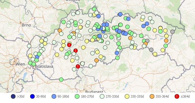 * Poznámka: M-denný prietok predstavuje priemerný denný prietok dosiahnutý alebo prekročený po M dní v zvolenom období. To znamená, že napríklad 355-denný prietok (Q355d) je hodnota, ktorá by v danom profile na toku mala byť menšia v priemere len 10 dní v roku (365 dní mínus 355), po zvyšné dni roka by mala byť buď rovná tejto hodnote alebo väčšia. Za hodnoty blízke minimám (obdobie sucha) považujeme najmä hodnoty odpovedajúce Q355d, Q364d.