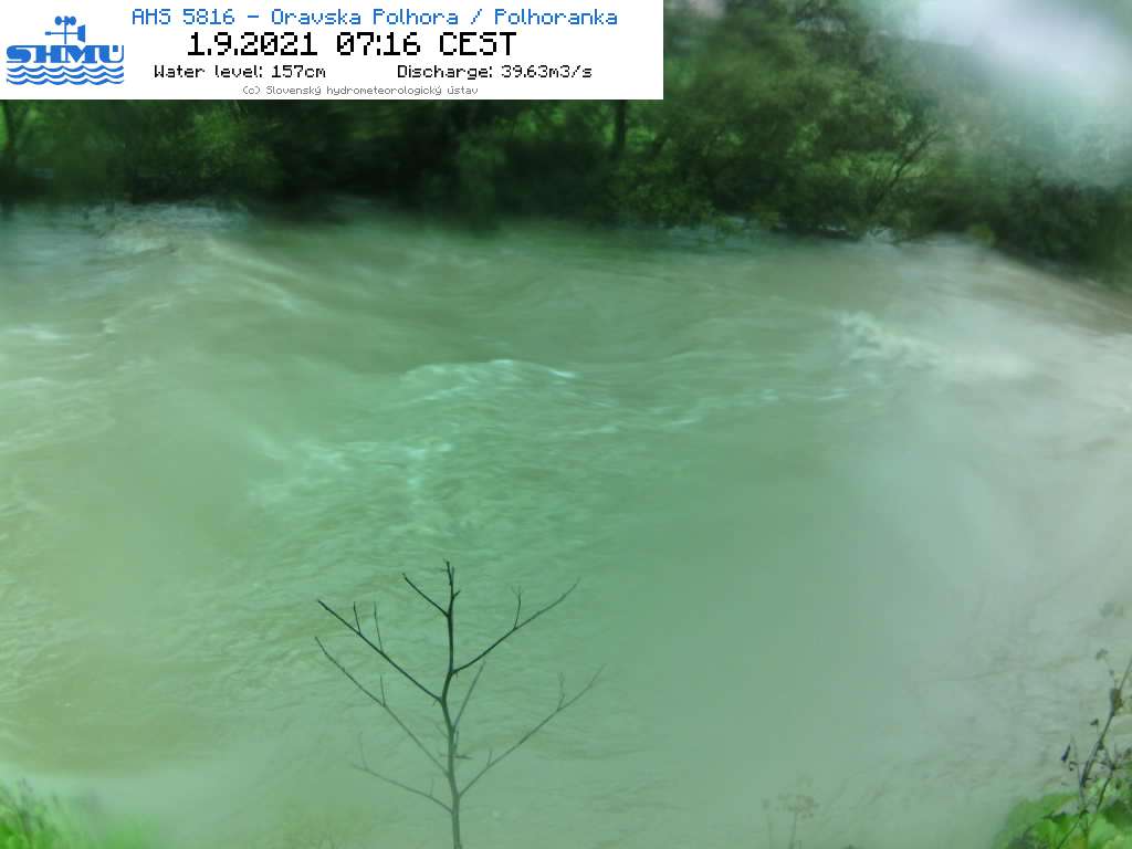 V úvode mesiaca sme zaznamenali zvýšené vodné hladiny predovšetkým na tokoch v povodí horného Váhu a jeho prítokov: Oravy a Kysuce, ale napríklad aj v povodí Popradu. Vzhľadom na pretrvávajúci cyklonálny ráz počasia v posledných dňoch augusta došlo najmä v povodiach v severnej polovici Slovenska k výraznej zrážkovej činnosti podnietenej hlavne náveterným vplyvom pohorí. Hoci v úvode septembra sa už zrážky vyskytovali len výnimočne, vysoké vodné stavy (aj s prekročenými SPA) doznievali v prvých dvoch septembrových dňoch. 3. SPA bol zaznamenaný na Piekelniku v Jablonke (poľská časť povodia Oravy), 2. SPA na Jaloveckom Potoku v Liptovskej Ondrášovej, na Polhoranke v Oravskej Polhore (obr. 3), na Čiernej Orave v Jablonke (poľská časť povodia Oravy), na Jelešni a Oravici v Trstenej, Studenom potoku vo vodomernej stanici Oravský Biely Potok a na Kysuci v Čadci (obr. 4). 1. SPA bol zaznamenaný v ďalších 18 vodomerných staniciach v spomínaných povodiach.