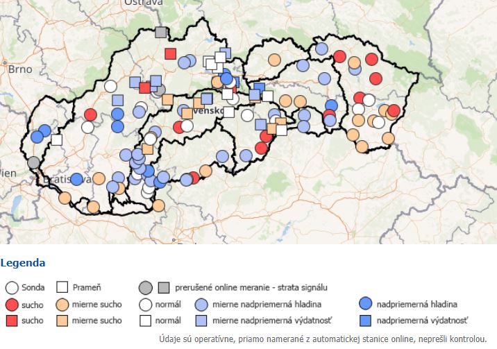 Hodnotenie aktuálneho hydrologického stavu sa vykonáva na základe operatívnych prietokových údajov z vybraných vodomerných staníc (VS) povrchových vôd, na základe operatívnych údajov hladiny podzemnej vody a výdatnosti prameňov vybraných monitorovacích objektov. Finálne spracované údaje v oboch hodnoteniach sa od operatívnych môžu líšiť. Hodnotenie na základe operatívnych údajov je on-line prezentované na internetovej stránke SHMÚ - Monitoring sucha. Podrobnejšie informácie o povodňových situáciách prinášajú povodňové správy zverejnené na webovej stránke SHMÚ.