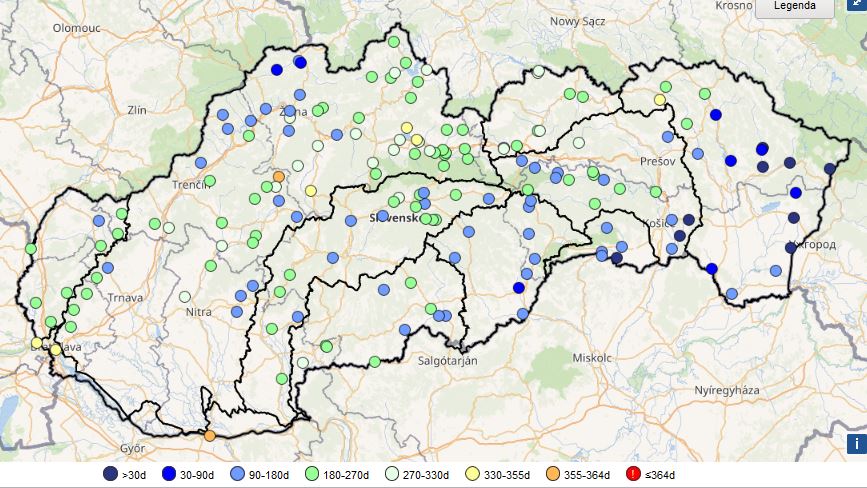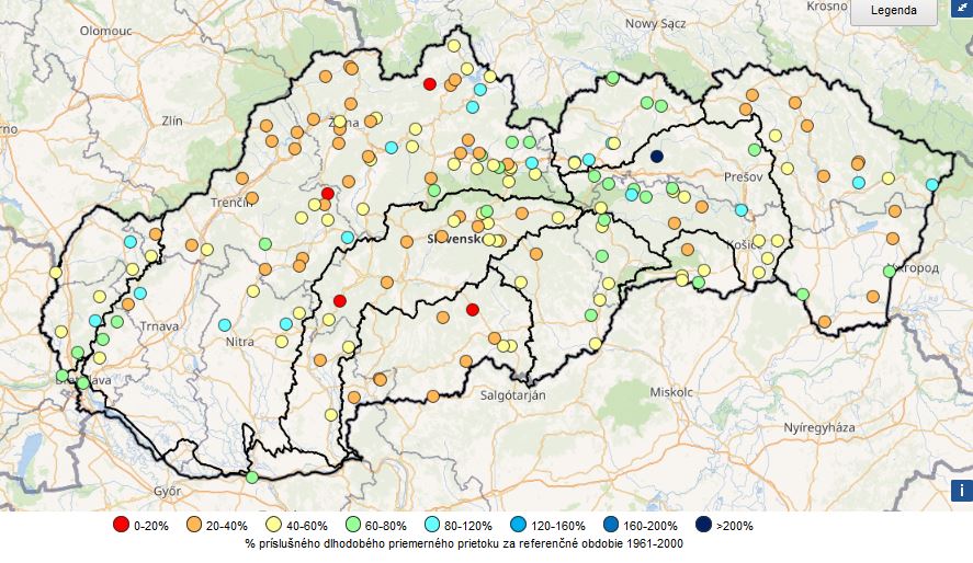 * Poznámka: M-denný prietok predstavuje priemerný denný prietok dosiahnutý alebo prekročený po M dní v zvolenom období. To znamená, že napríklad 355-denný prietok (Q355d) je hodnota, ktorá by v danom profile na toku mala byť menšia v priemere len 10 dní v roku (365 dní mínus 355), po zvyšné dni roka by mala byť buď rovná tejto hodnote alebo väčšia. Za hodnoty blízke minimám (obdobie sucha) považujeme najmä hodnoty odpovedajúce Q355d, Q364d.