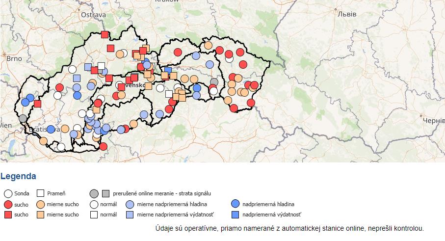 Hodnotenie aktuálneho hydrologického stavu sa vykonáva na základe operatívnych prietokových údajov z vybraných vodomerných staníc (VS) povrchových vôd, na základe operatívnych údajov hladiny podzemnej vody a výdatnosti prameňov vybraných monitorovacích objektov. Finálne spracované údaje v oboch hodnoteniach sa od operatívnych môžu líšiť. Hodnotenie na základe operatívnych údajov je on-line prezentované na internetovej stránke SHMÚ - monitoring sucha. Podrobnejšie informácie o povodňových situáciách prinášajú povodňové správy zverejnené na webovej stránke SHMÚ.