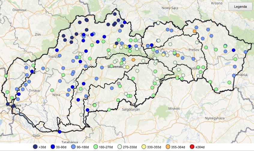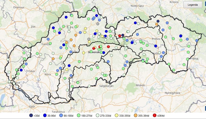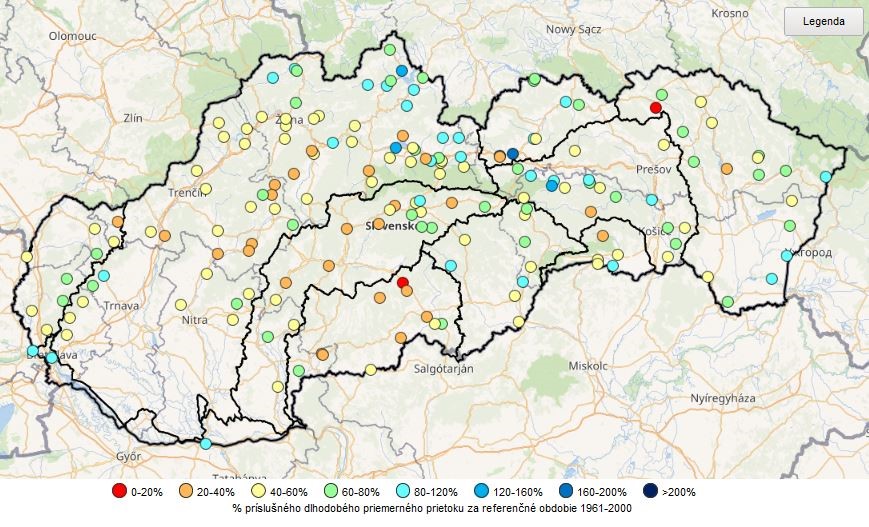 * Poznámka: M-denný prietok predstavuje priemerný denný prietok dosiahnutý alebo prekročený po M dní v zvolenom období. To znamená, že napríklad 355-denný prietok (Q355d) je hodnota, ktorá by v danom profile na toku mala byť menšia v priemere len 10 dní v roku (365 dní mínus 355), po zvyšné dni roka by mala byť buď rovná tejto hodnote alebo väčšia. Za hodnoty blízke minimám (obdobie sucha) považujeme najmä hodnoty odpovedajúce Q355d, Q364d.
