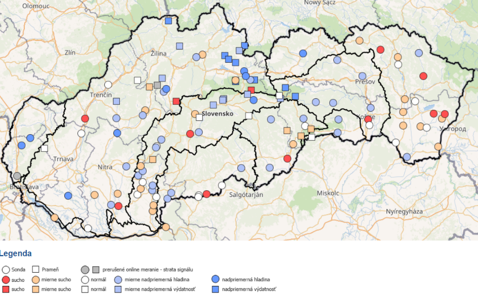 Hodnotenie aktuálneho hydrologického stavu sa vykonáva na základe operatívnych prietokových údajov z vybraných vodomerných staníc (VS) povrchových vôd, na základe operatívnych údajov hladiny podzemnej vody a výdatnosti prameňov vybraných monitorovacích objektov. Finálne spracované údaje v oboch hodnoteniach sa od operatívnych môžu líšiť. Hodnotenie na základe operatívnych údajov je on-line prezentované na internetovej stránke SHMÚ - Monitoriong sucha. Podrobnejšie informácie o povodňových situáciách prinášajú povodňové správy zverejnené na webovej stránke SHMÚ.