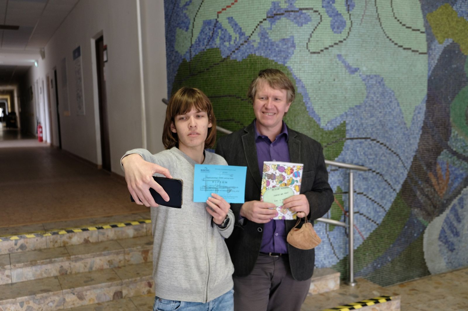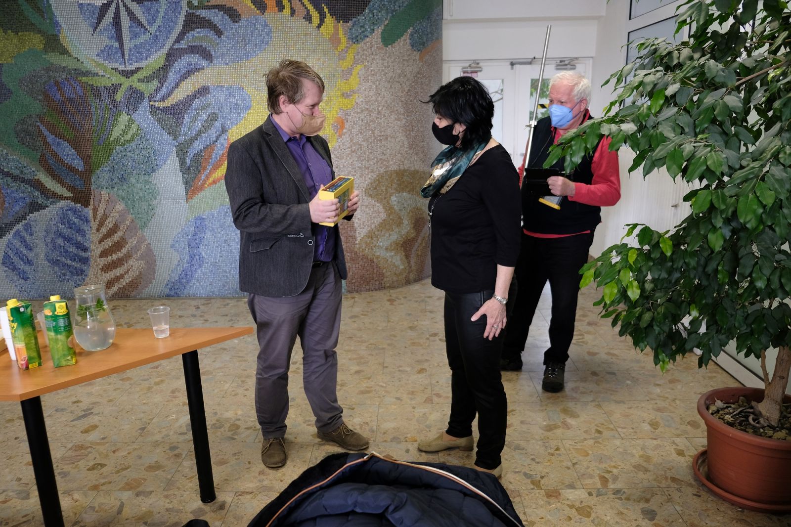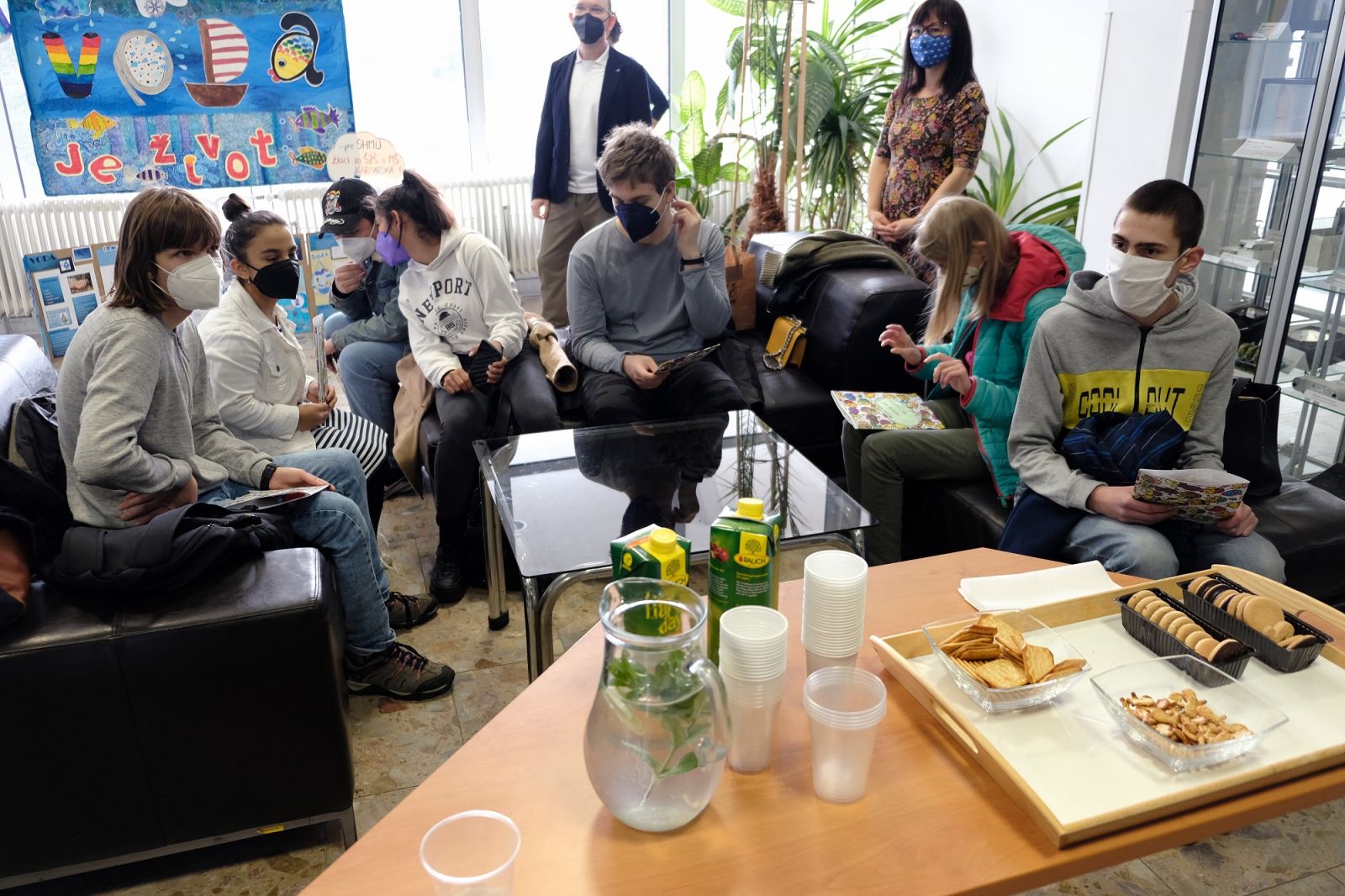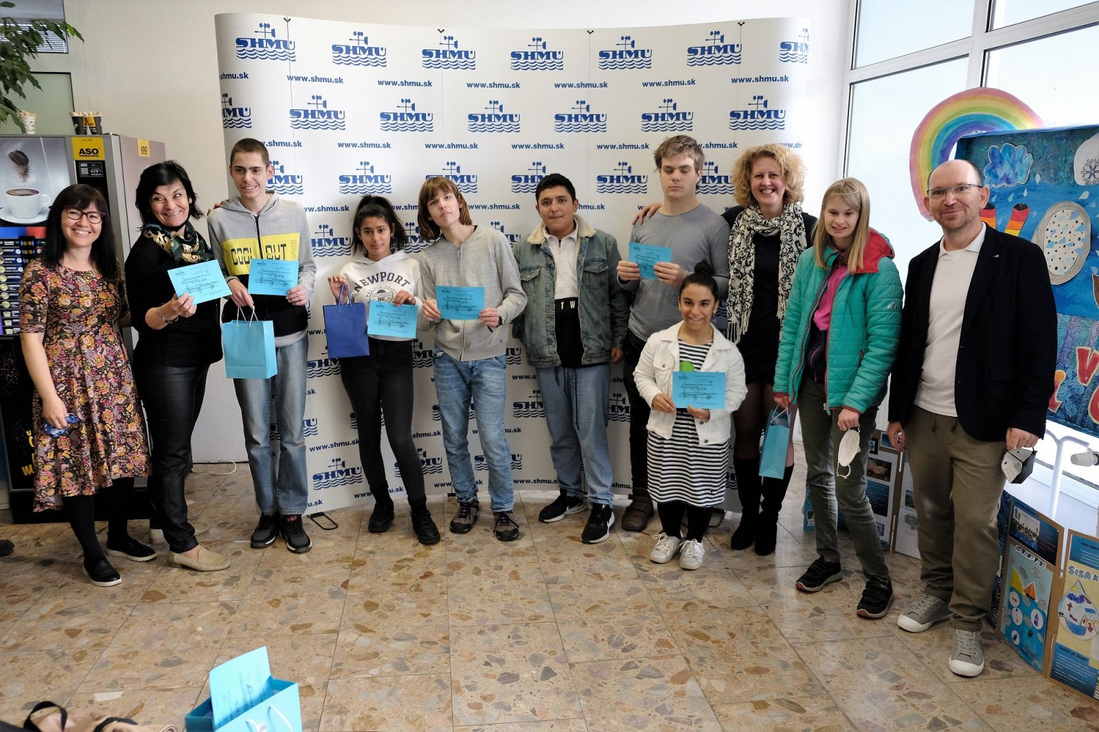 Deti zo Špeciálnej základnej školy s materskou školou na Karpatskej ulici v Bratislave nám dnes priniesli krásny dar. Pri príležitosti Svetového dňa vody namaľovali obraz - svoju predstavu o kolobehu vody v prírode a o živočíchoch, ktoré žijú v našich riekach. Ponúkame malú fotogalériu z tejto milej udalosti. Deťom - autorom diela veľmi pekne ďakujeme.