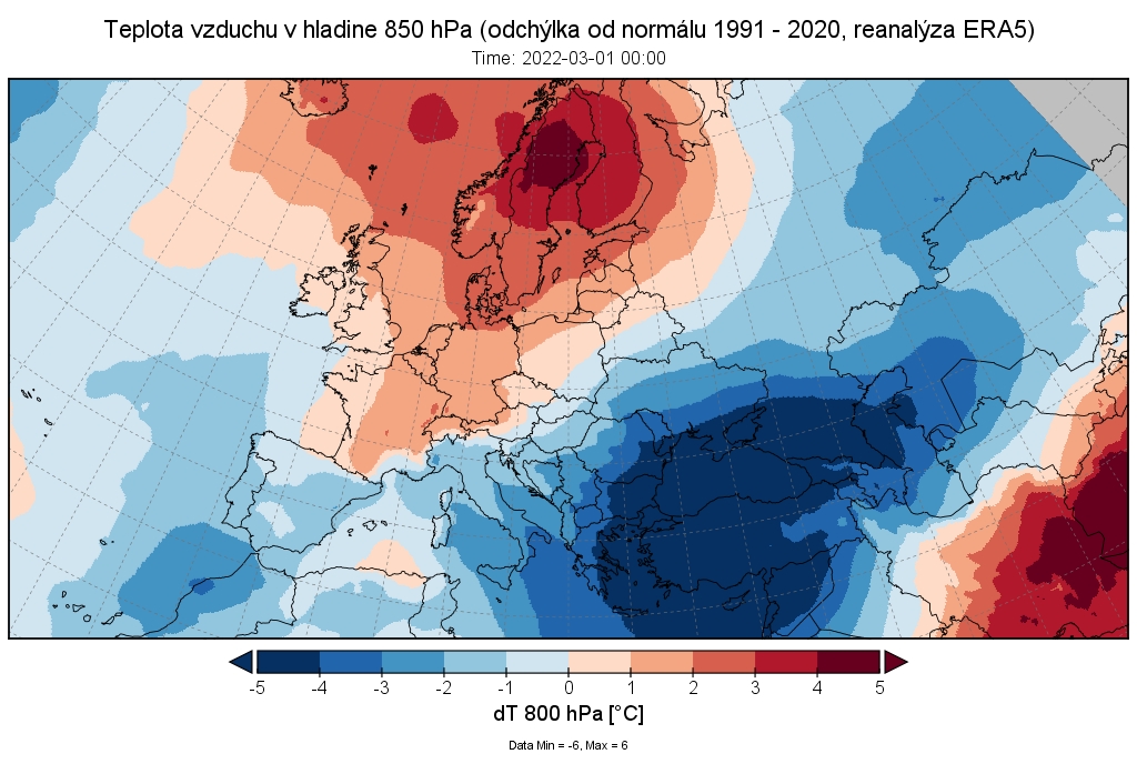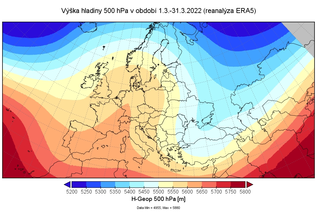 Počas prvých dní mesiaca sa striedavo severozápadne, severne až severovýchodne od nás udržiaval stred mohutnej a rozsiahlej tlakovej výše a do našej oblasti prúdil po väčšinu času od severu až severovýchodu chladný a suchý vzduch. Dňa 7.3. sa vo vyšších hladinách ovzdušia presúvala cez Ukrajinu a západné Rusko smerom na juhovýchod až juh brázda nízkeho tlaku.