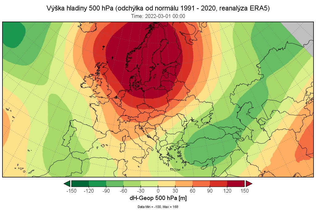 V uplynulom období niekoľkých mesiacov a predovšetkým v priebehu tohtoročného marca sme zaznamenali na území Slovenska celý rad poveternostných extrémov. Popri dosiahnutých mimoriadne vysokých marcových hodnotách tlaku vzduchu bola ešte charakteristickejšou a významnejšou črtou prítomnosť mimoriadne až extrémne suchého vzduchu, a to aj v najnižších vrstvách atmosféry [o týchto skutočnostiach sme informovali v príspevkoch na FB profile SHMÚ a tiež v samostatnej analýze]. To sa na mnohých miestach prejavilo abnormálne nízkymi hodnotami relatívnej vlhkosti vzduchu a rekordne vysokými dennými amplitúdami teploty vzduchu, a to dokonca v absolútnom (celoročnom) historickom kontexte. Príčinou tohto atypického priebehu počasia bola nielen prevládajúce cirkulácia atmosféry (výrazne perzistentná tlaková výš v priestore Európy, pozri nižšie), ale aj pretrvávajúci nedostatok zrážok v období posledného roka 2021 a najmä zimy 2021/2022. Všetky mesiace počnúc septembrom 2021 boli z pohľadu zrážok nevýrazné, navyše v priebehu celej zimy bol najmä v južnej polovici Slovenska výrazný nedostatok prírodného snehu.