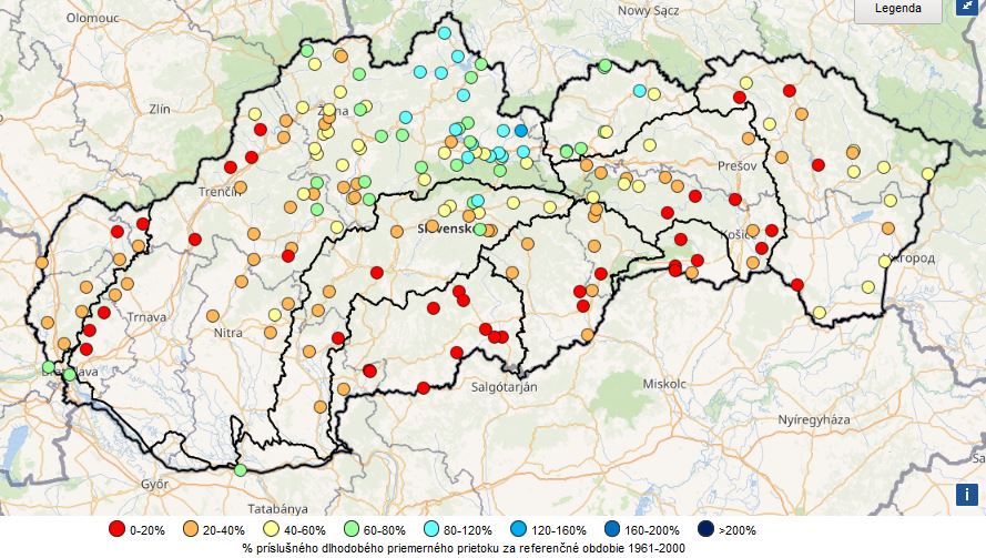Priemerné denné prietoky (Qd) na začiatku mesiaca dosahovali v prevažnej časti hodnotených vodomerných staníc (VS) hodnoty v rozmedzí 90 - 270-denných prietokov, v strednej časti Slovenska 180 - 330-denných prietokov (obr. 2).*