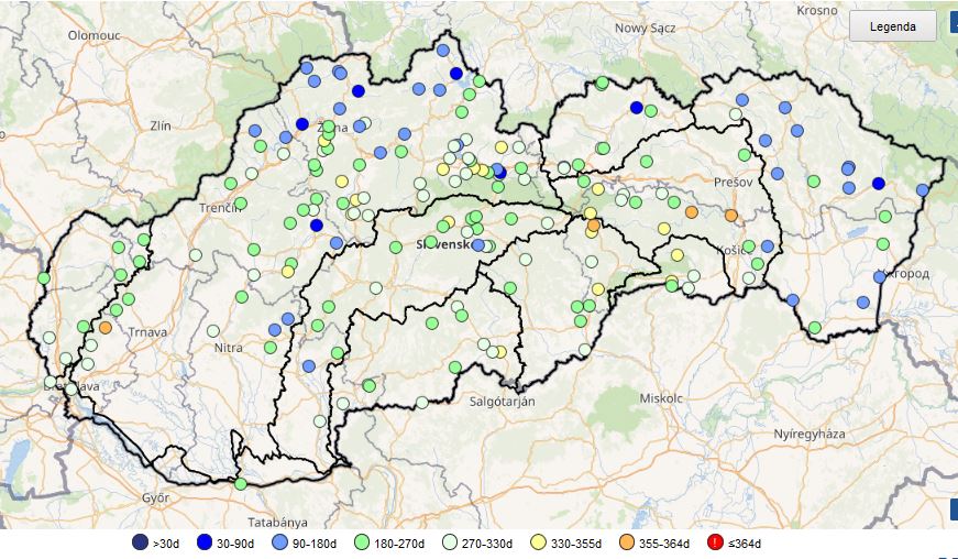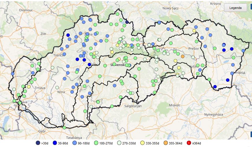 * Poznámka: M-denný prietok predstavuje priemerný denný prietok dosiahnutý alebo prekročený po M dní v zvolenom období. To znamená, že napríklad 355-denný prietok (Q355d) je hodnota, ktorá by v danom profile na toku mala byť menšia v priemere len 10 dní v roku (365 dní mínus 355), po zvyšné dni roka by mala byť buď rovná tejto hodnote alebo väčšia. Za hodnoty blízke minimám (obdobie sucha) považujeme najmä hodnoty odpovedajúce Q355d, Q364d.