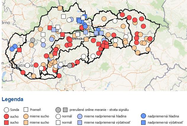 Hodnotenie aktuálneho hydrologického stavu sa vykonáva na základe operatívnych prietokových údajov z vybraných vodomerných staníc povrchových vôd, na základe operatívnych údajov hladiny podzemnej vody a výdatnosti prameňov vybraných monitorovacích objektov. Finálne spracované údaje v oboch hodnoteniach sa od operatívnych môžu líšiť. Hodnotenie na základe operatívnych údajov je on-line prezentované na internetovej stránke SHMÚ – MONITORING SUCHA. Podrobnejšie informácie o povodňových situáciách prinášajú povodňové správy zverejnené na WEBOVEJ STRÁNKE SHMÚ.