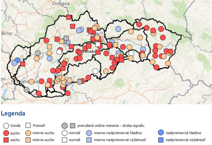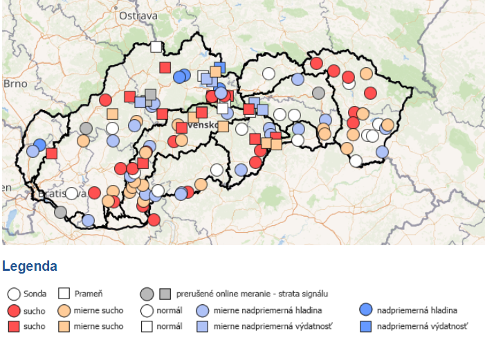 Hodnotenie aktuálneho hydrologického stavu sa vykonáva na základe operatívnych prietokových údajov z vybraných vodomerných staníc povrchových vôd, na základe operatívnych údajov hladiny podzemnej vody a výdatnosti prameňov vybraných monitorovacích objektov. Finálne spracované údaje v oboch hodnoteniach sa od operatívnych môžu líšiť. Hodnotenie na základe operatívnych údajov je on-line prezentované na internetovej stránke SHMÚ – monitoring sucha. Podrobnejšie informácie o povodňových situáciách prinášajú povodňové správy zverejnené na webovej stránke SHMÚ. Zrážkové úhrny v tomto mesiaci nájdete podrbnejšie zhodnotené (TU).