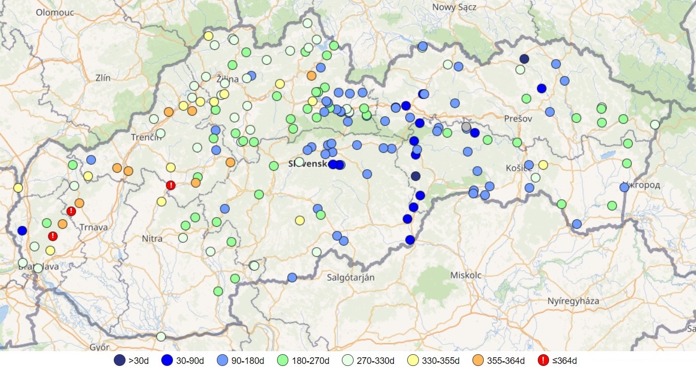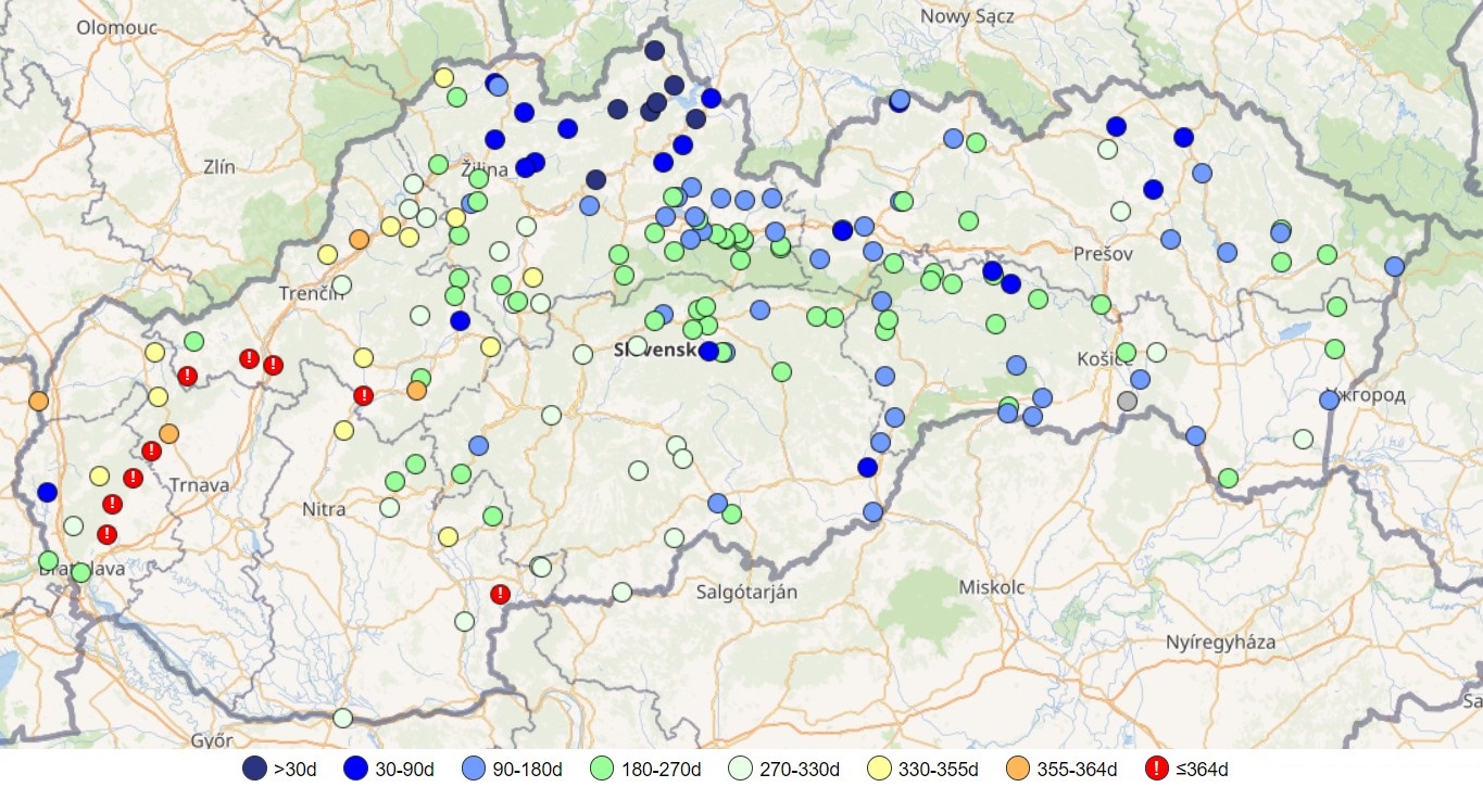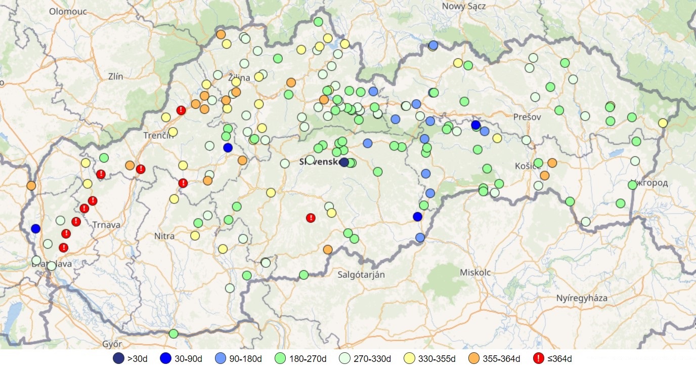 * Poznámka: M-denný prietok predstavuje priemerný denný prietok dosiahnutý alebo prekročený po M dní v zvolenom období. To znamená, že napríklad 355-denný prietok (Q355d) je hodnota, ktorá by v danom profile na toku mala byť menšia v priemere len 10 dní v roku (365 dní mínus 355), po zvyšné dni roka by mala byť buď rovná tejto hodnote alebo väčšia. Za hodnoty blízke minimám (obdobie sucha) považujeme najmä hodnoty odpovedajúce Q355d, Q364d.