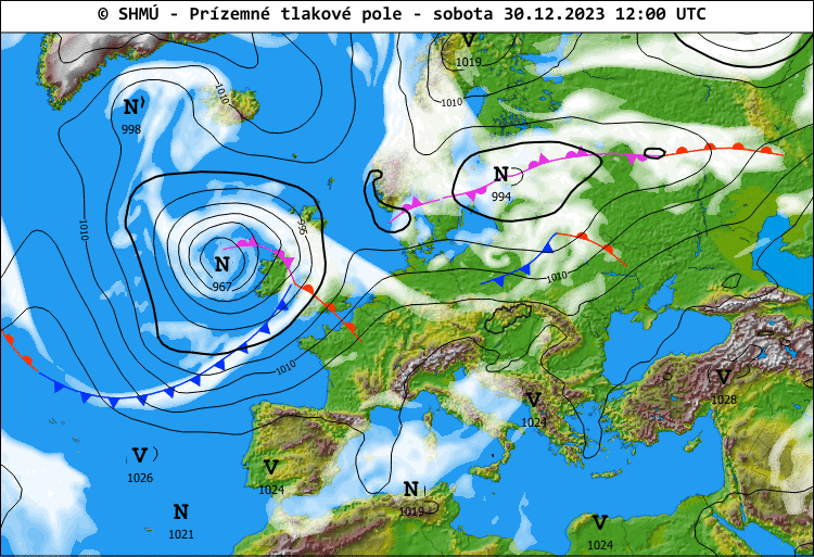 Na Silvestra sme sa nachádzali na prednej strane tlakovej níže so stredom nad Britskými ostrovmi v relatívne teplom a vlhkom juhozápadnom prúdení. Prevládalo oblačné až zamračené počasie s lokálnymi hmlami, zmenšená oblačnosť bola len na niektorých miestach na juhozápade Slovenska. Popoludní a večer sa na viacerých miestach stredného a východného Slovenska vyskytli zrážky s maximálnym úhrnom 15 mm v Demänovskej Doline - Jasnej a vo Vyšnej Boci. Snežilo od cca 1200 m. Denné maximum bolo väčšinou v intervale 1 až 7 °C, teplejšie bolo na západe krajiny s maximom na juhu Podunajskej nížiny, kde bolo do 12 °C. Fúkal väčšinou len slabý alebo mierny vietor prevažne južných smerov, len na juhozápade bol na niektorých miestach čerstvý juhovýchodný vietor.