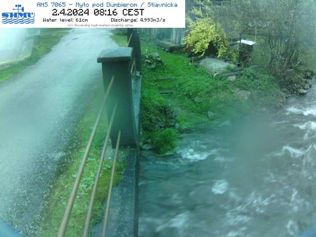 Obr. 5 Zvýšený vodný stav na Štiavničke, pravostrannom prítoku Hrona z Nízkych Tatier z trvalých zrážok a topiaceho sa snehu