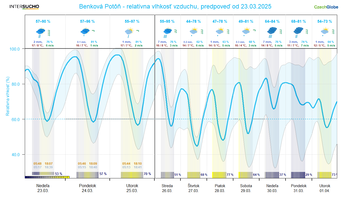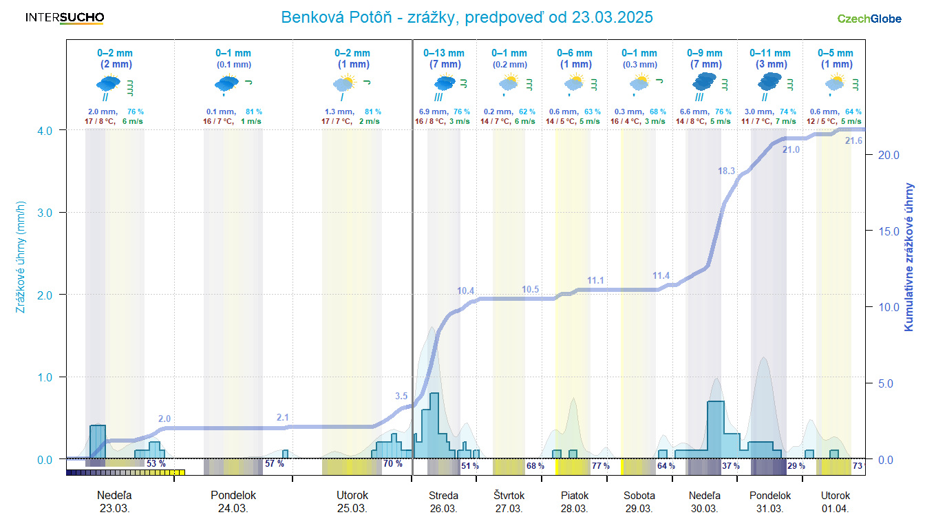 Obrázok 1 Ukážka nových bonusových predpovedných grafov pre určitú lokalitu dostupná len pre aktívnych členov reportovacej siete dopadov sucha na poľnohospodárstvo a ovocinárstvo