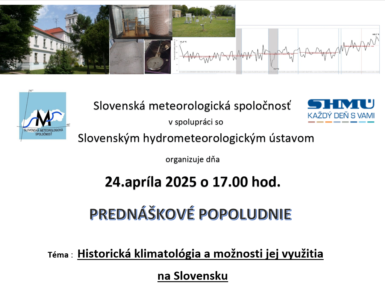 Podujatie bude po dlhom čase nielen online, ale tešíme sa aj na vašu osobnú účasť v SHMÚ, Jeséniova 17, Bratislava - Koliba, budova A, manažérska miestnosť na prízemí.