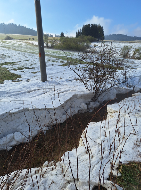 Obr. 5 Naplavené krúpy v bezprostrednom okolí Skalnatého potoka nad obcou Babín, foto: 23.4.2025 (deň po búrke), autor S. Liová (SHMÚ ZA)