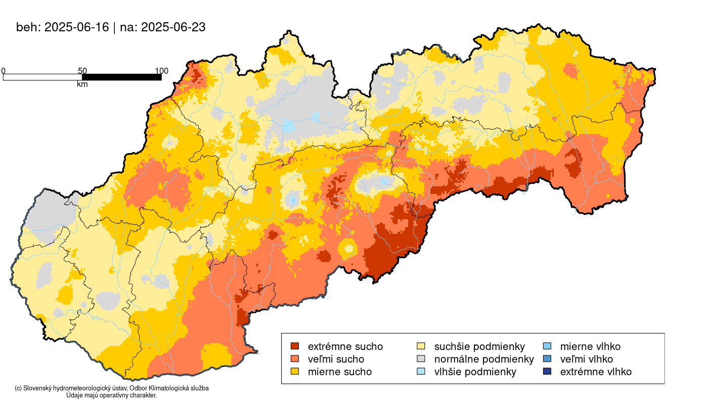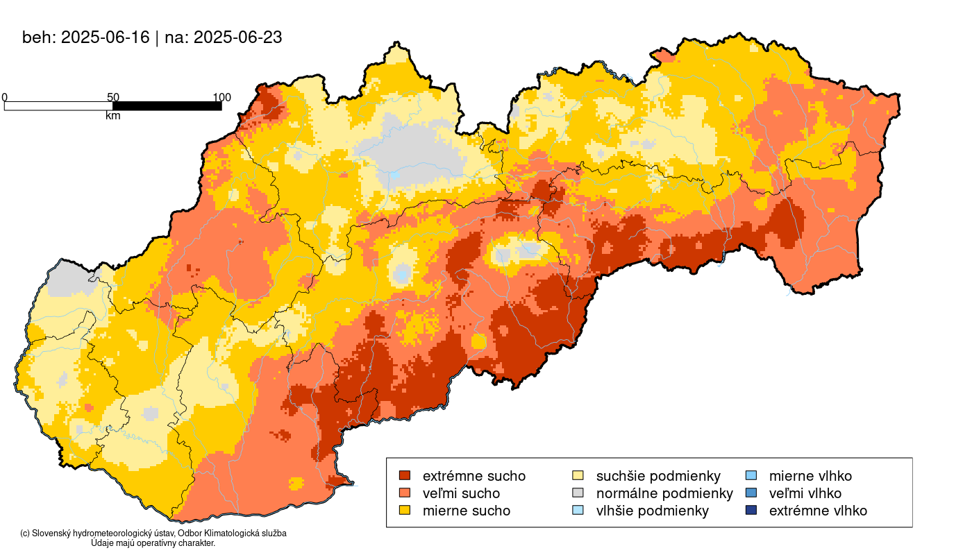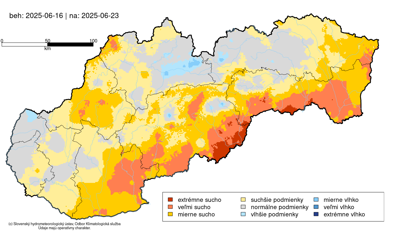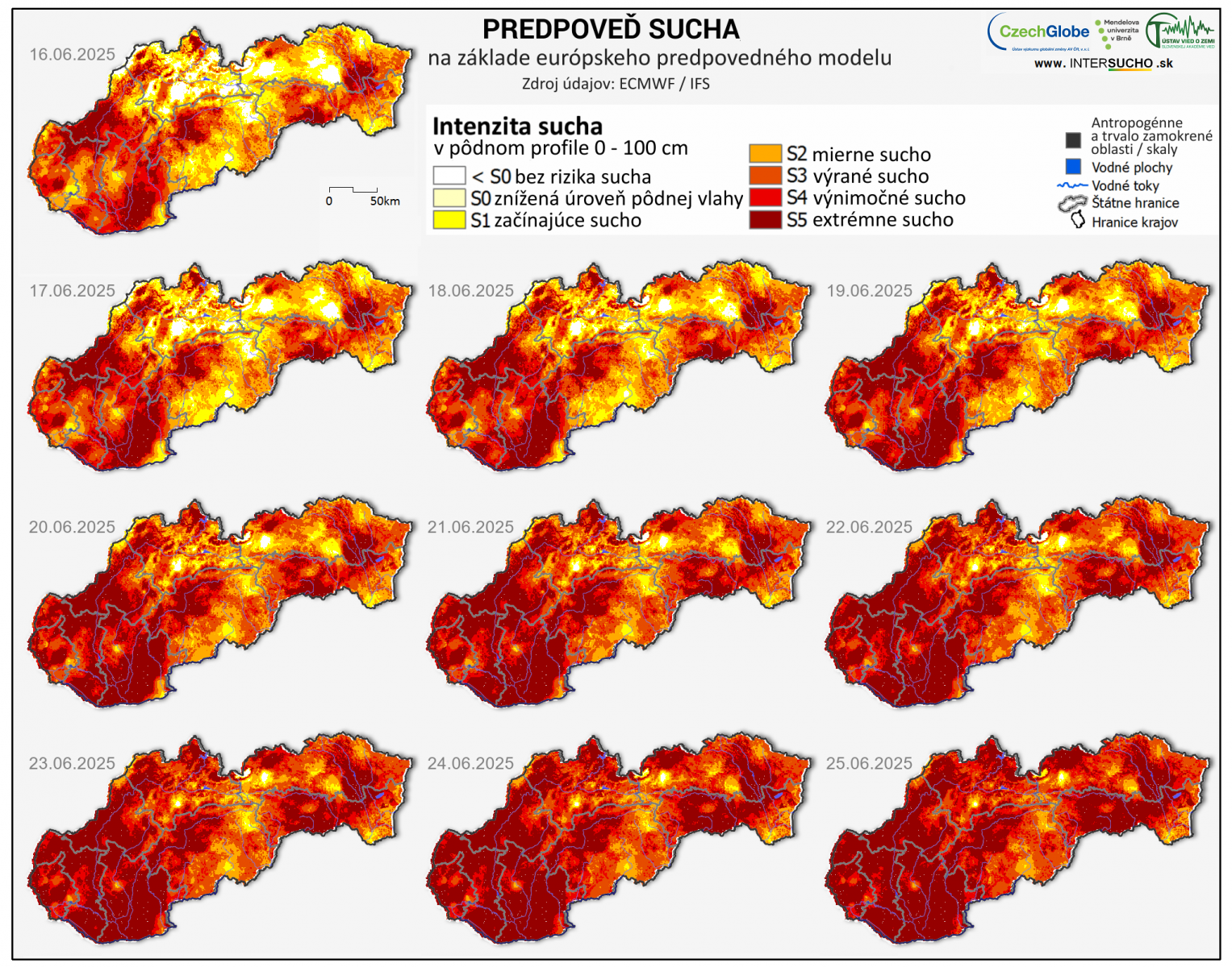 Obrázok 6 Predpoveď vývoja pôdneho sucha na Slovensku v období 16.6. až 25.6.2025