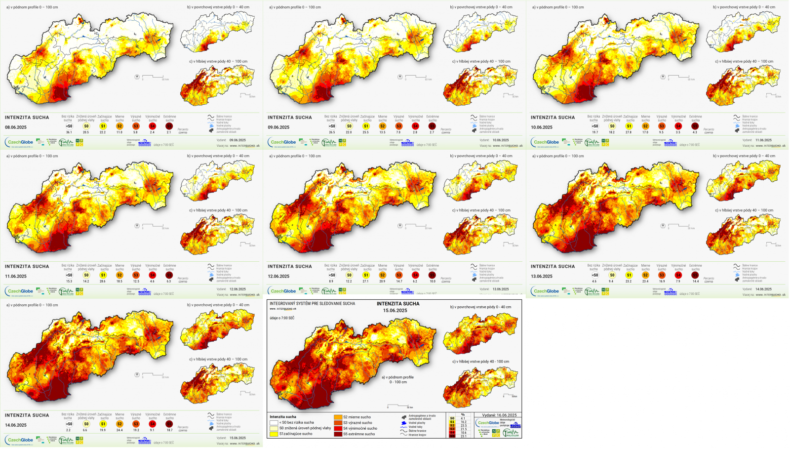 Obrázok 1 Vývoj pôdneho sucha na Slovensku od 8. do 15.6.2025