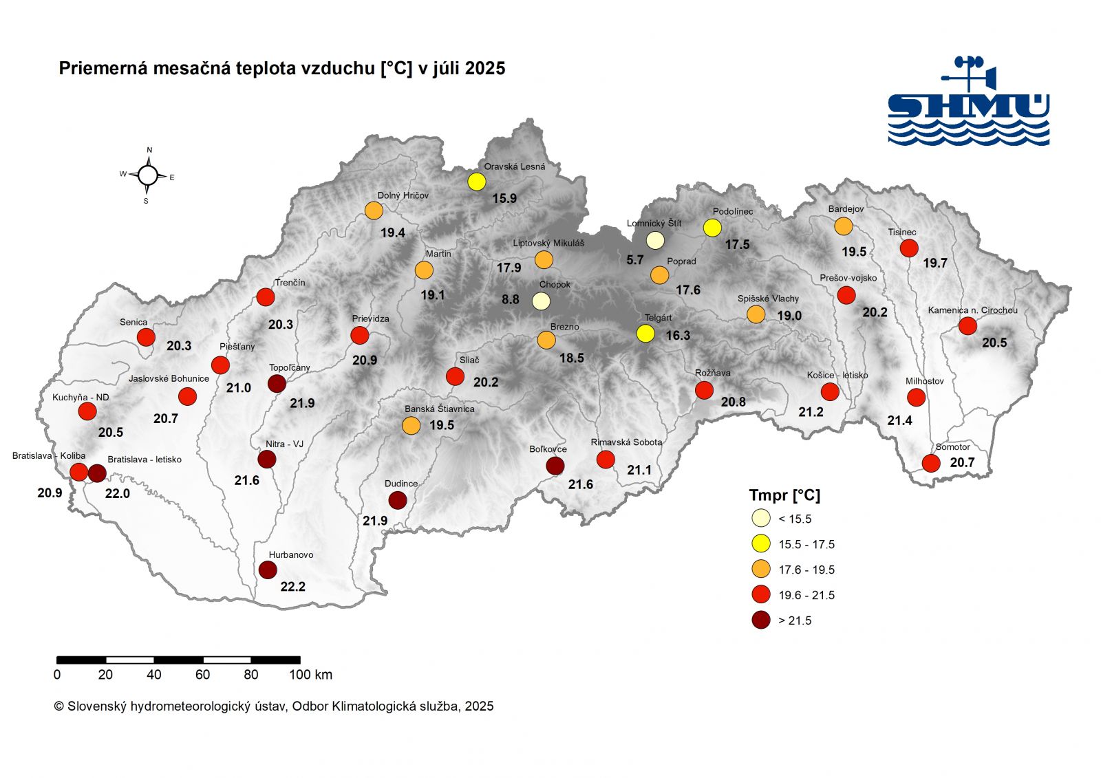 Charakter počasia na Slovensku v júli 2025 – teplota vzduchu
