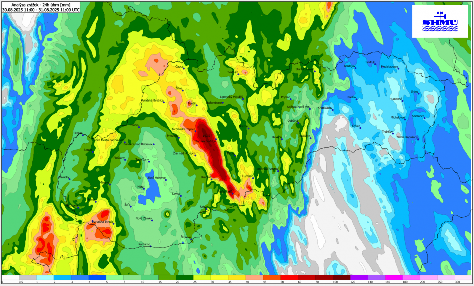Mimoriadne až extrémne augustové úhrny zrážok na konci leta 2025