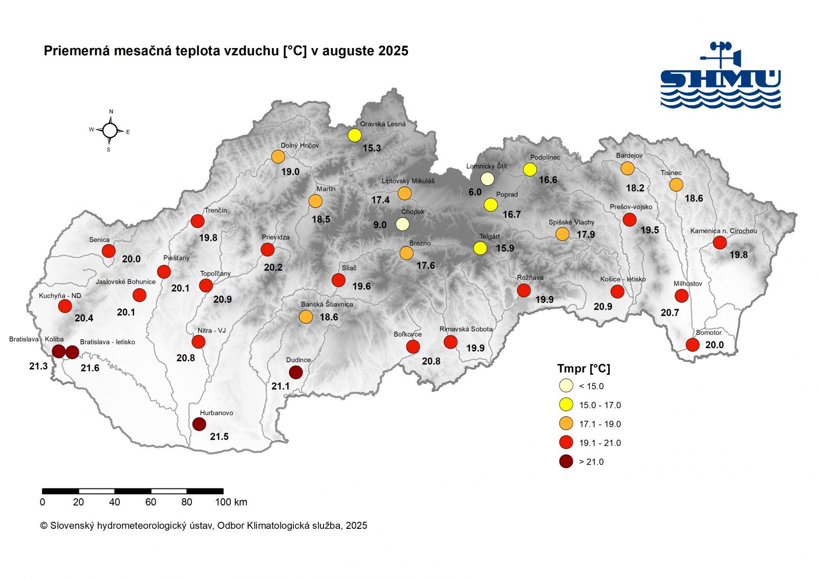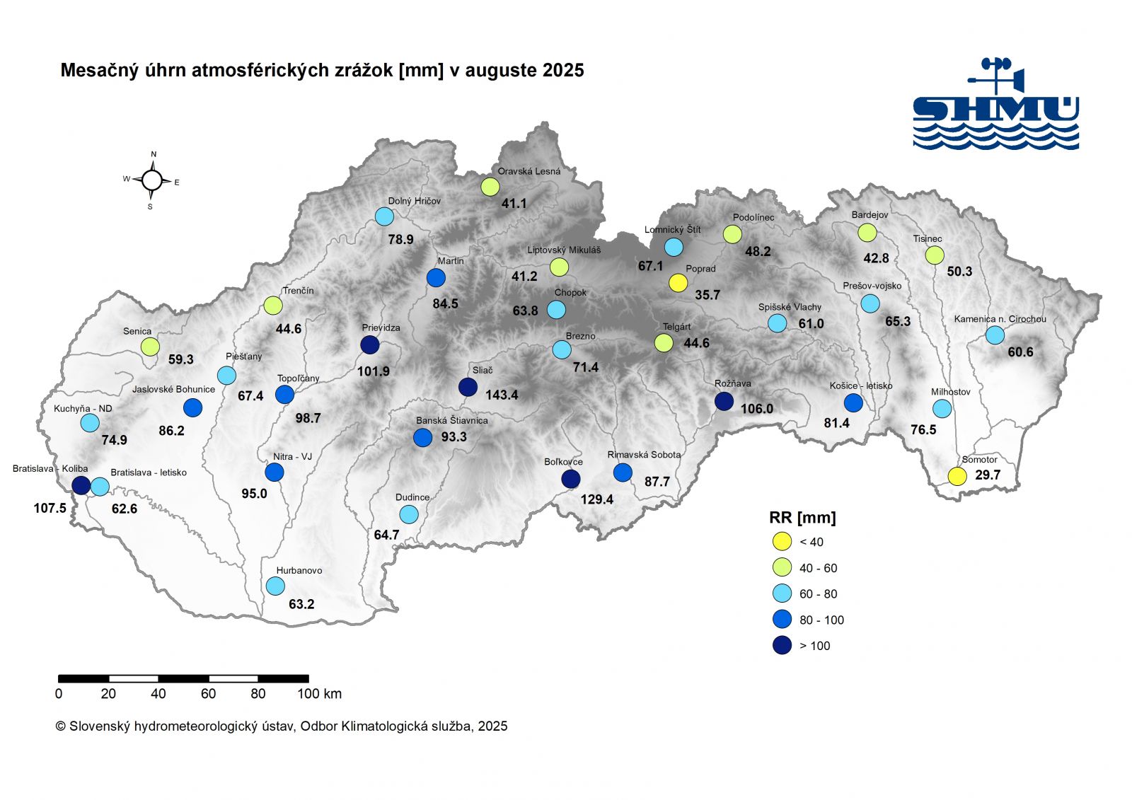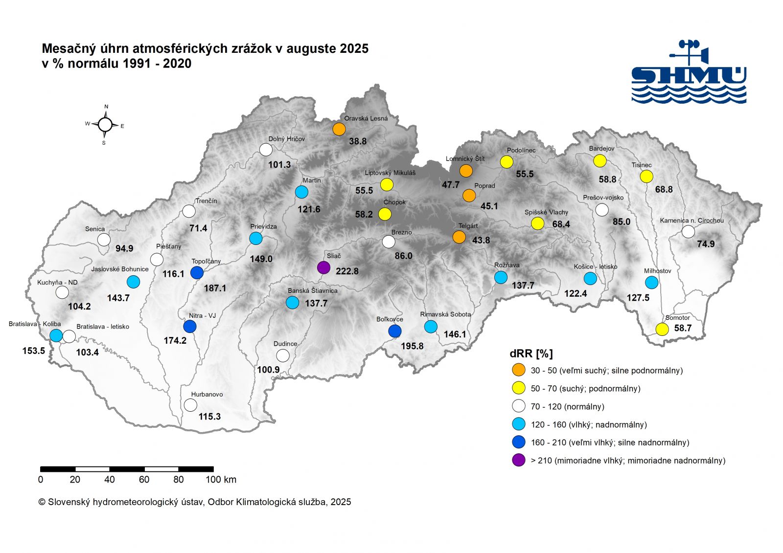 Toto zhodnotenie vychádza z operatívnych údajov, ktoré boli dostupné hneď po skončení mesiaca 2.9.2025. Bližšie zhodnotenie bude v priebehu septembra na stránke SHMÚ.
