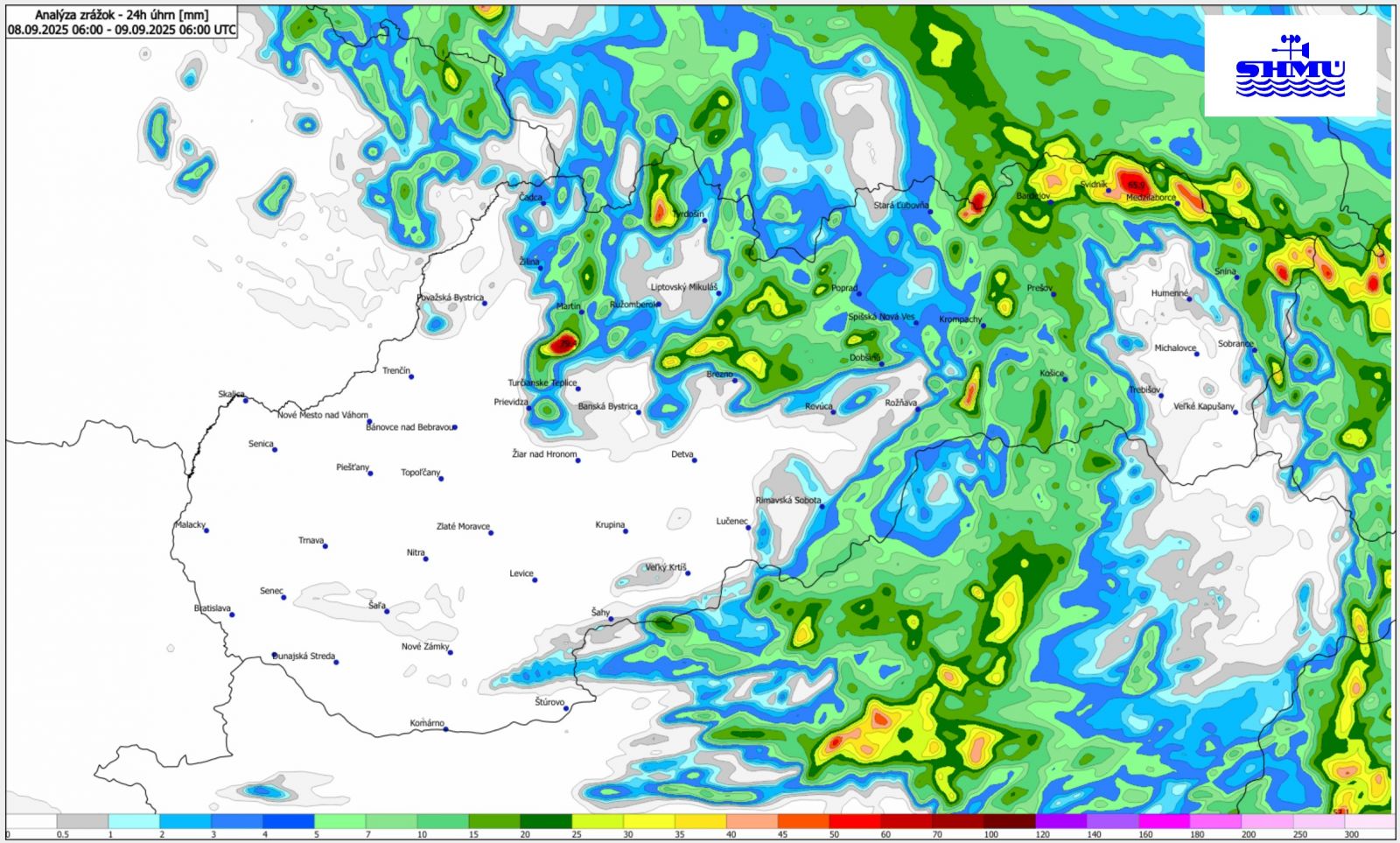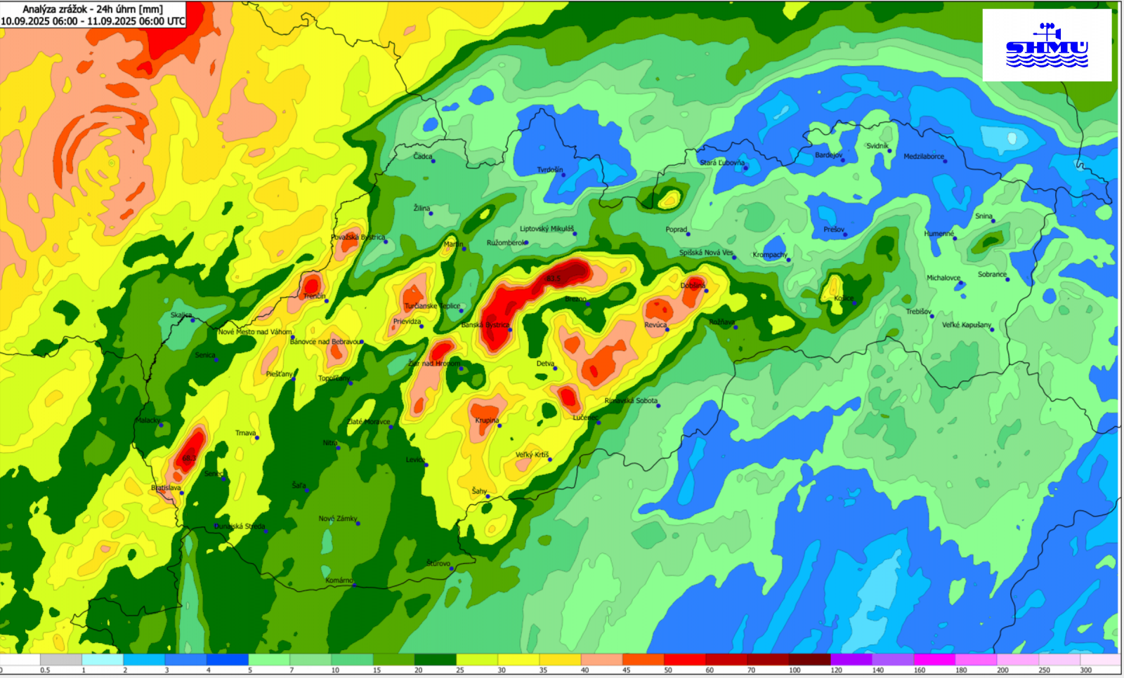 Mimoriadne až extrémne denné úhrny zrážok v prvej polovici septembra 2025