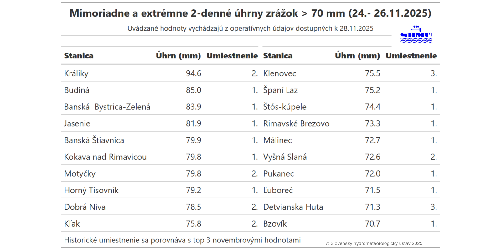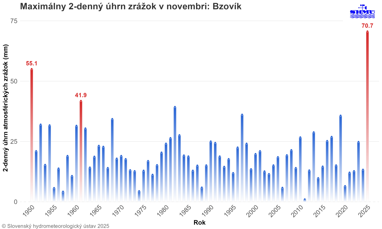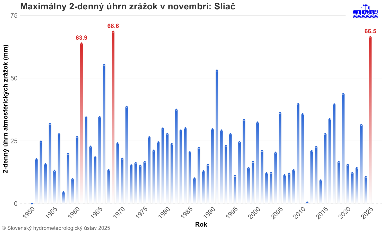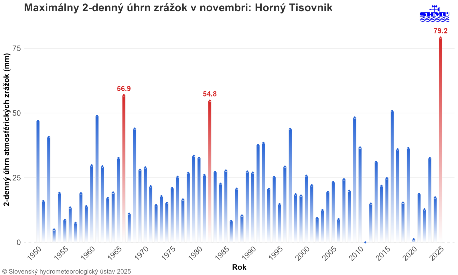 Mimoriadne až extrémne vysoké denné a dvojdenné úhrny atmosférických zrážok na Slovensku v novembri 2025.