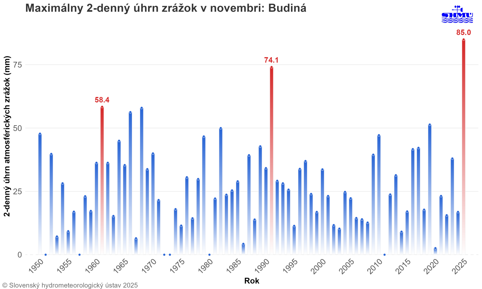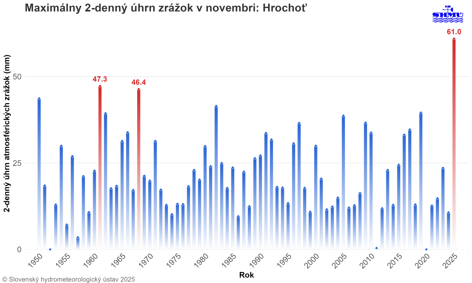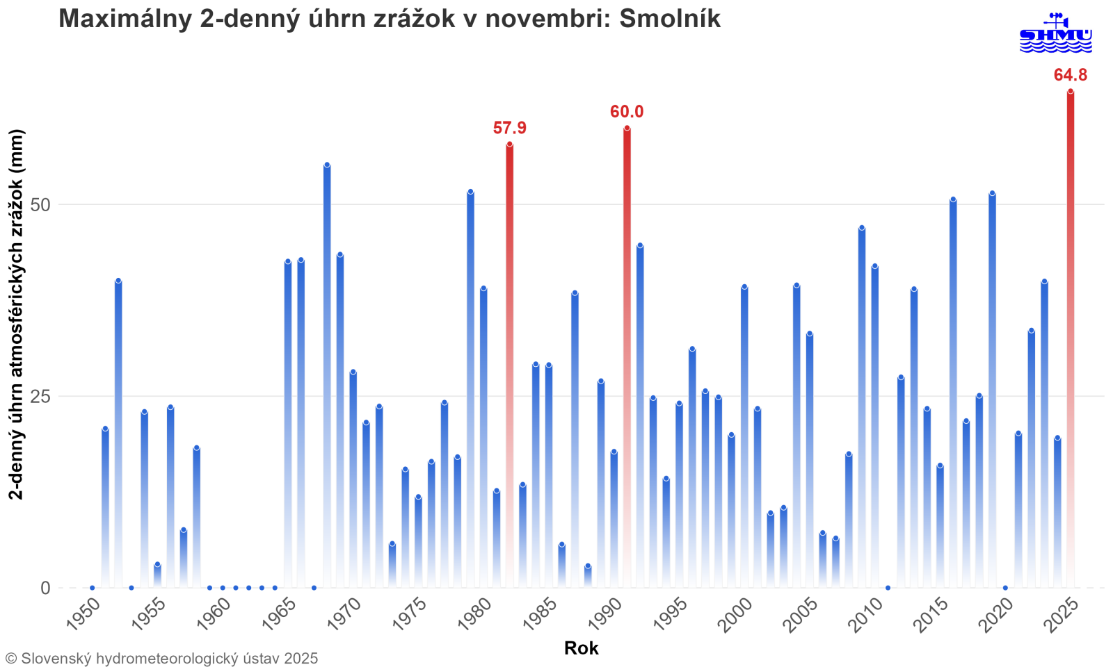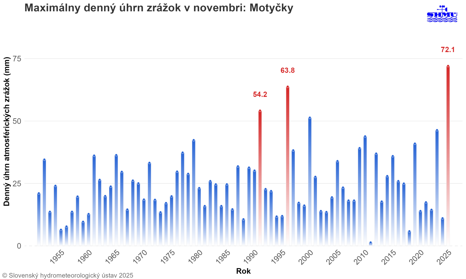 Mimoriadne až extrémne vysoké denné a dvojdenné úhrny atmosférických zrážok na Slovensku v novembri 2025.