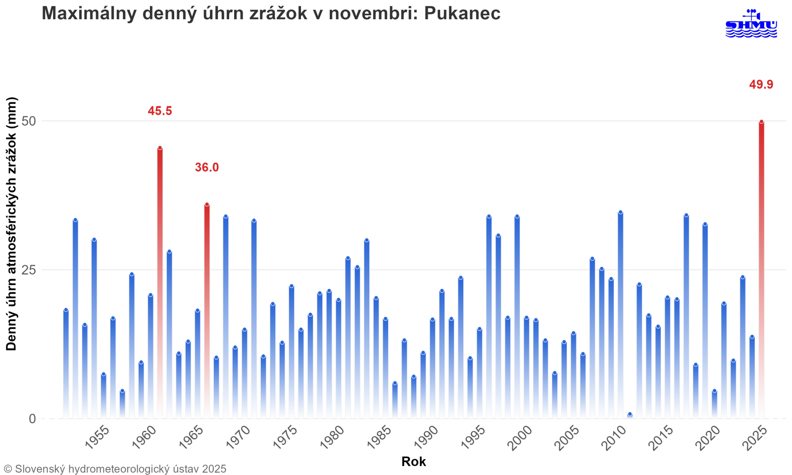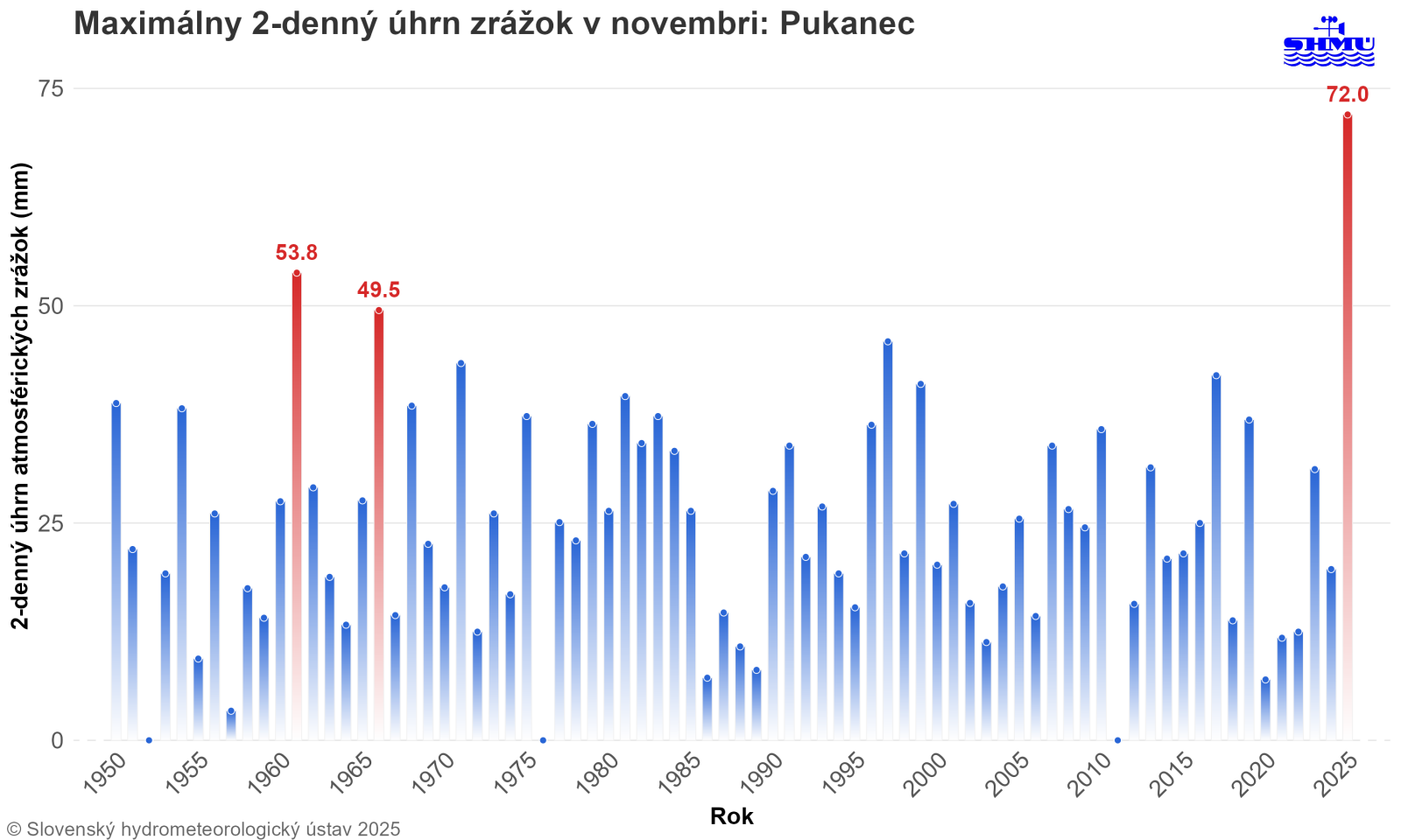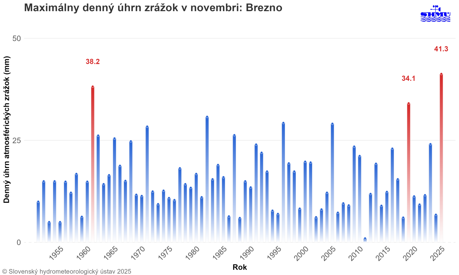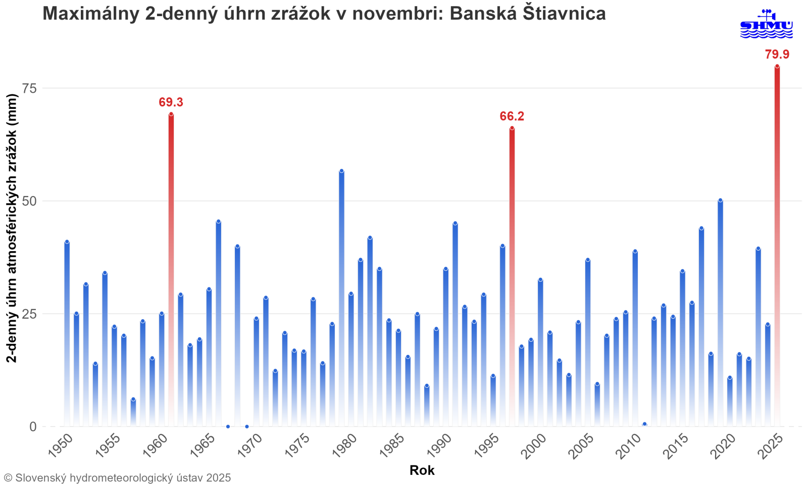 Mimoriadne až extrémne vysoké denné a dvojdenné úhrny atmosférických zrážok na Slovensku v novembri 2025.
