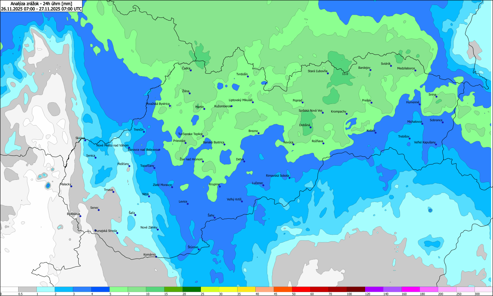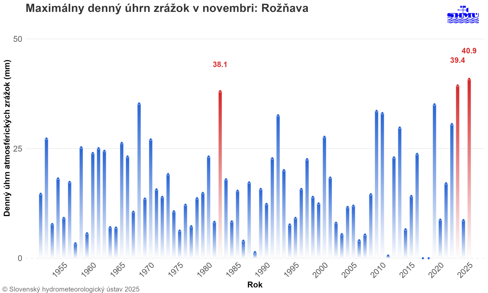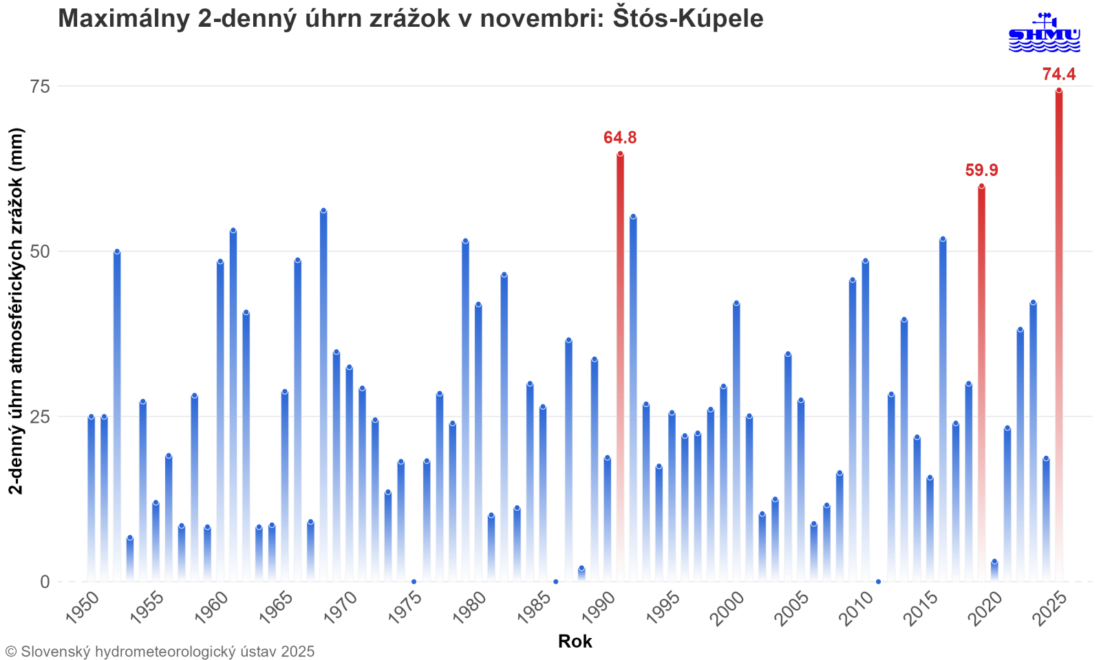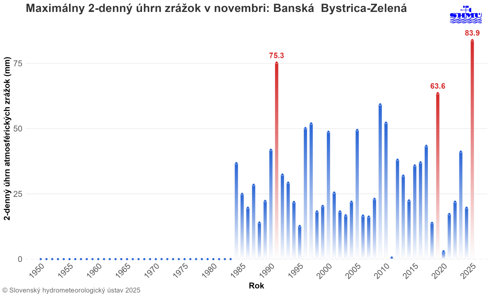 Mimoriadne až extrémne vysoké denné a dvojdenné úhrny atmosférických zrážok na Slovensku v novembri 2025.
