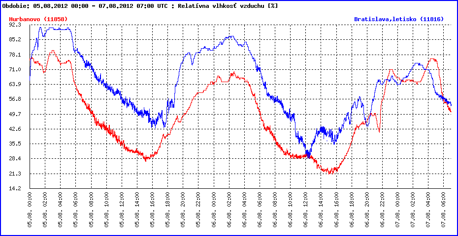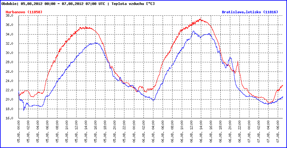 Výskyt (na niektorých miestach Slovenska) rekordne vysokých teplôt vzduchu na začiatku augusta 2012: