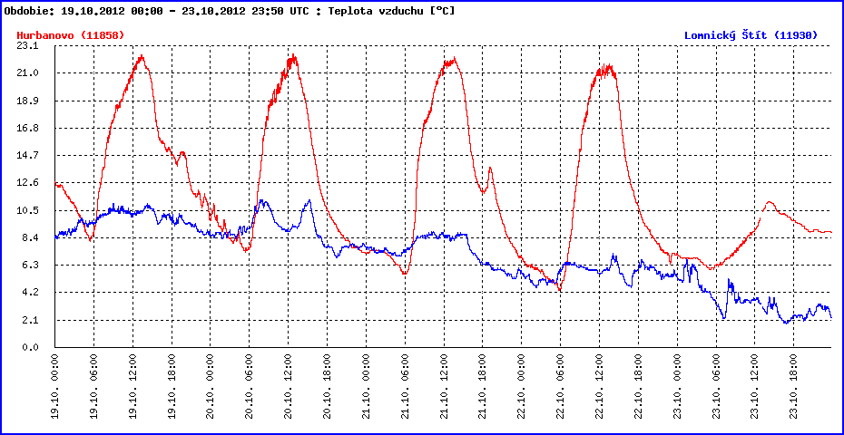 Pozoruhodné je obdobie 19. až 23.10.2012, kedy (najmä v ranných hodinách) teploty vzduchu na Lomnickom štíte boli (v dôsledku inverzie) vyššie ako v Hurbanove:
