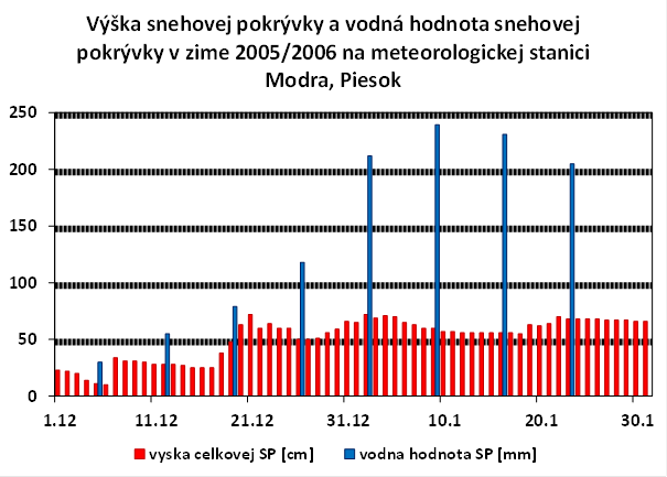 Avšak pri porovnávaní zásob vody v snehovej pokrývke v tohoročnej zime so zimou veľmi bohatou na sneh (zima 2005/2006), je zrejmé, že aktuálne zásoby vody v snehovej pokrývke nie sú tak nebezpečne veľké, ako to bolo v zime 2005/2006. Dôsledky veľkého obsahu vody v snehovej pokrývke v zime 2005/2006 boli na začiatku jari v nížinách juhozápadného Slovenska veľmi nepríjemné, pretože v nížinnom prostredí pri spomalenom odtoku vody dosiahli hladiny riek kritické hodnoty (napríklad na rieke Čierna Voda a povodňová situácia v Trsticiach).