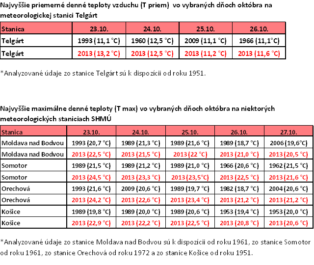 Takmer 10 dní trvá v týchto dňoch obdobie, v priebehu ktorého sú každý deň na niektorých meteorologických staniciach vyrovnávané alebo prekonávané rekordy určitých charakteristík teploty vzduchu. Pozoruhodné sú štvordňové, resp. päťdňové série rekordov priemernej a maximálnej dennej teploty vzduchu na meteorologickej stanici Telgárt a na niektorých meteorologických staniciach na juhovýchode Slovenska. Veľmi nápadné bolo cez víkend prekonanie 60 rokov starých rekordov maximálnej dennej teploty vzduchu v Košiciach.