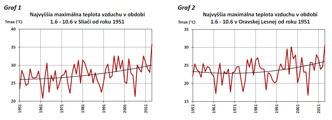 Pozoruhodný je obdobný obsah grafu, v ktorom sú prezentované výsledky meteorologických meraní v Sliači. Prvýkrát tam v tomto roku, takto skoro, namerali supertropickú hodnotu teploty vzduchu, a to 35 °C a viac. Zvolenská kotlina podobne ako Breznianska patria k uzavretejším kotlinám Slovenska, ktoré majú tendenciu pri slabšom prúdení vzduchu výrazne sa prehrievať. Ak k tomu pridáme skutočnosť, že sme tesne pred letným slnovratom a slnko viac dní po sebe takmer neprerušene svieti okolo 15 hodín denne, logickým dôsledkom je, že v Sliači dosiahla teplota vzduchu v utorok (10.6.2014) 35,8 °C.